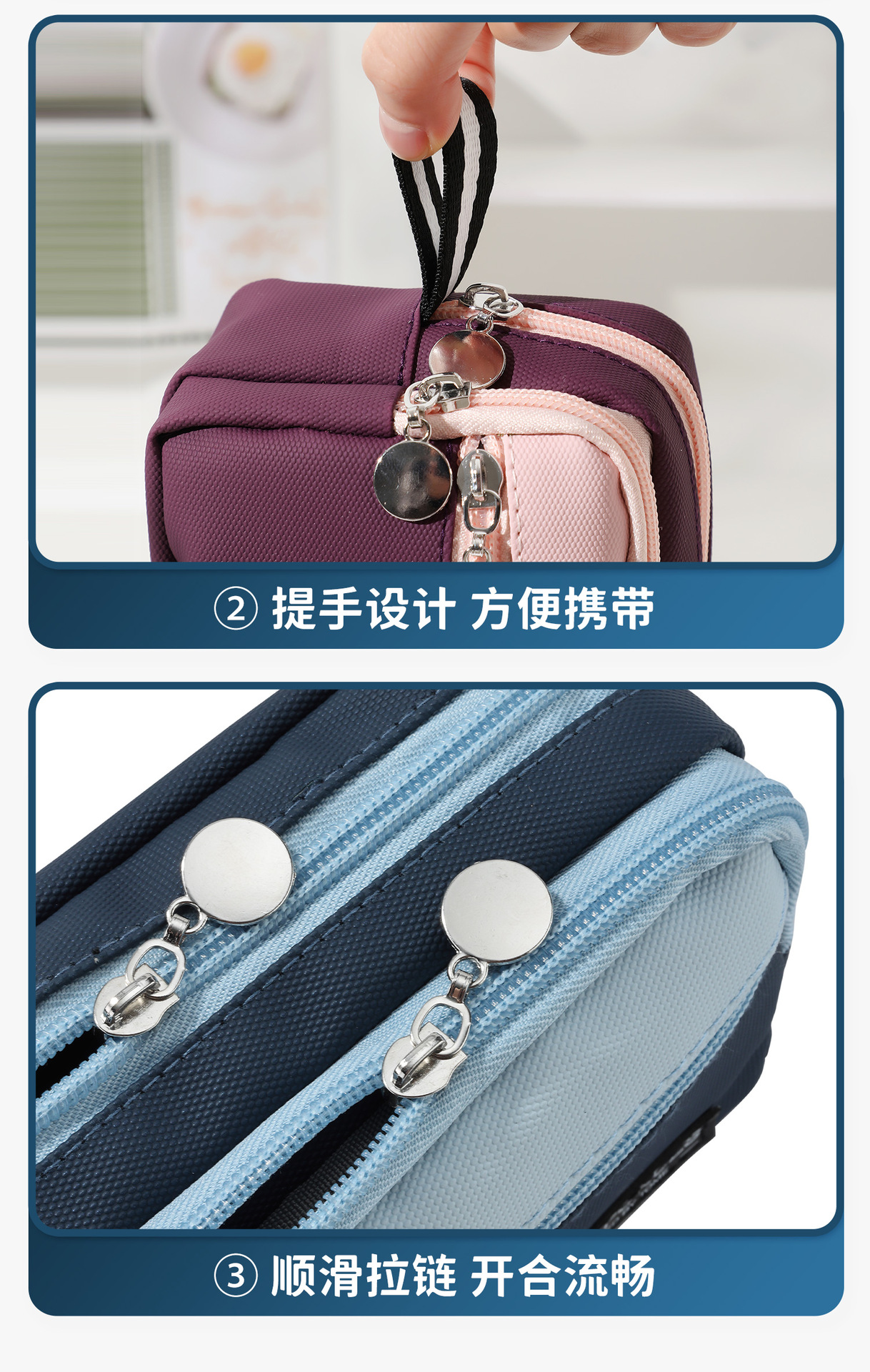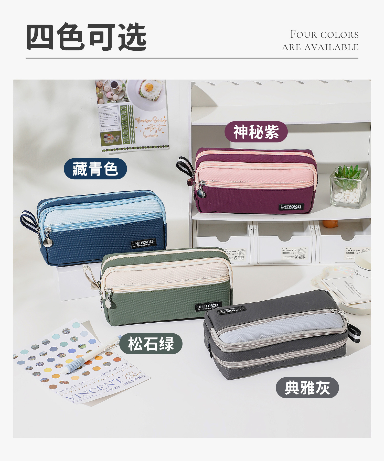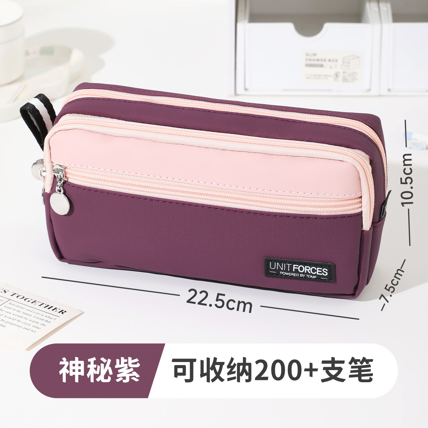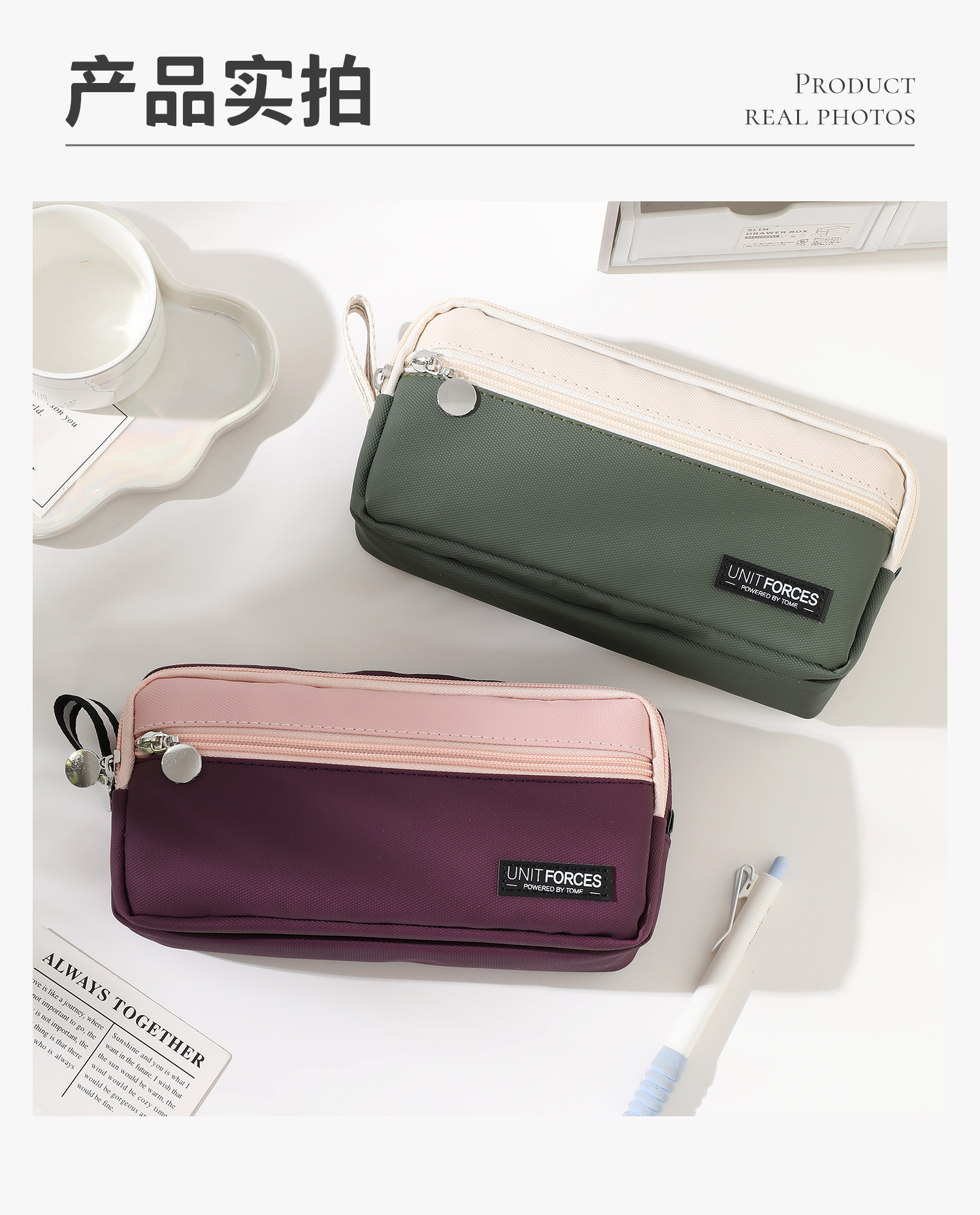 TOME 남학생을 위한 다층 방수 PU 가죽 연필 가방, 고등학생 및 중학생을 위한 고급스럽고 단순한 단색 단순 문구 가방