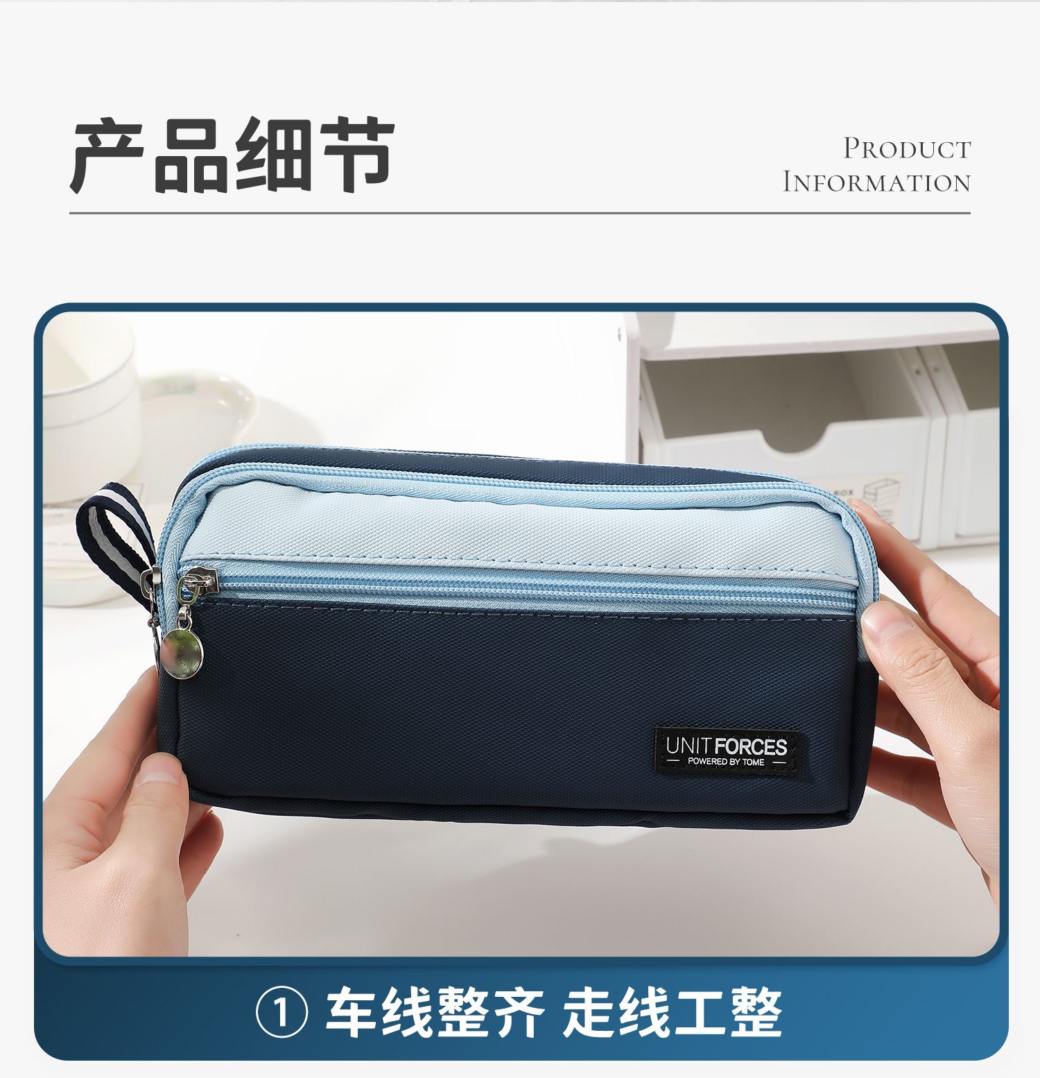 TOME 남학생을 위한 다층 방수 PU 가죽 연필 가방, 고등학생 및 중학생을 위한 고급스럽고 단순한 단색 단순 문구 가방스토어 가기