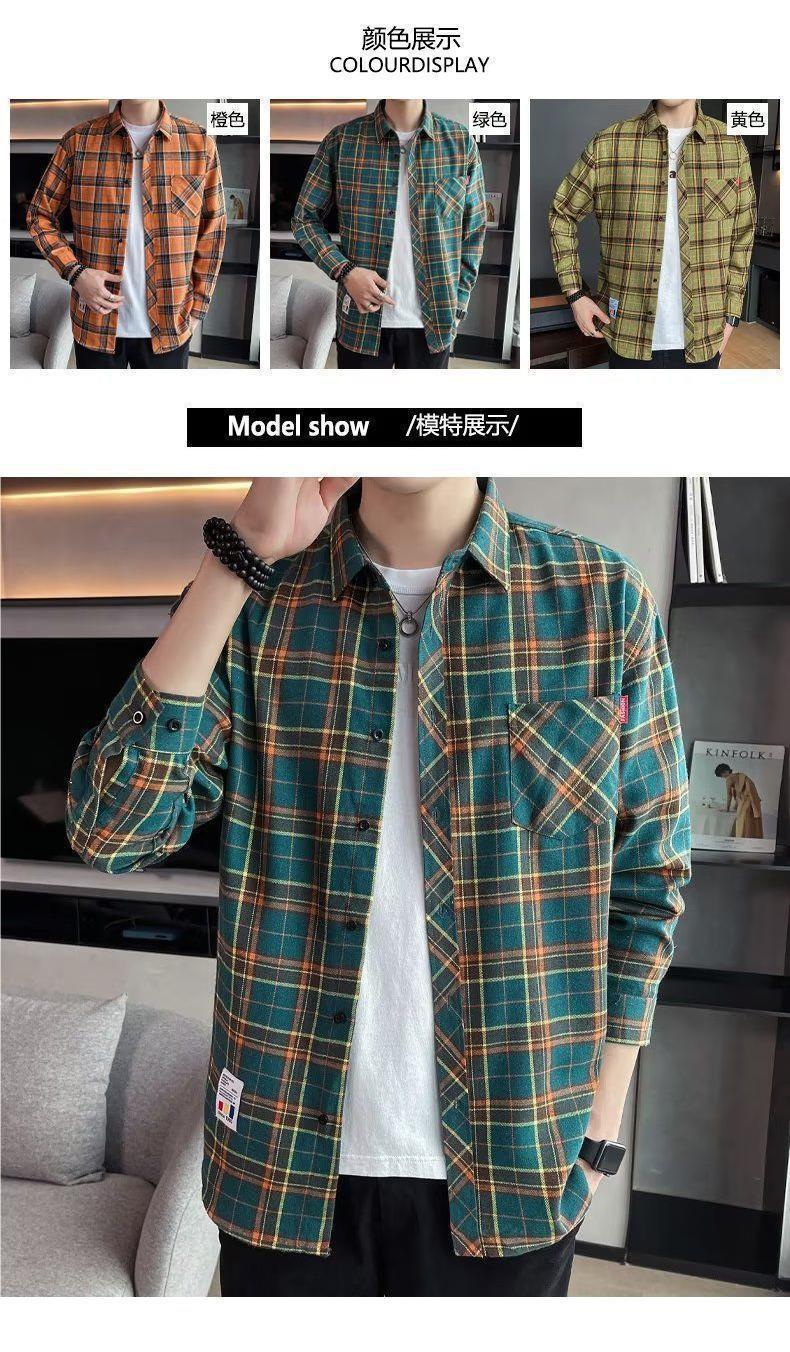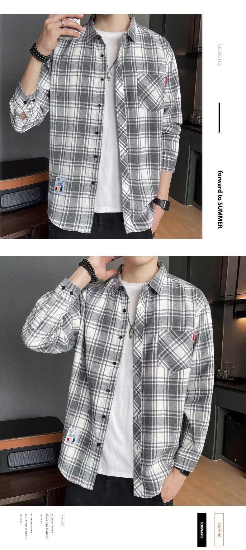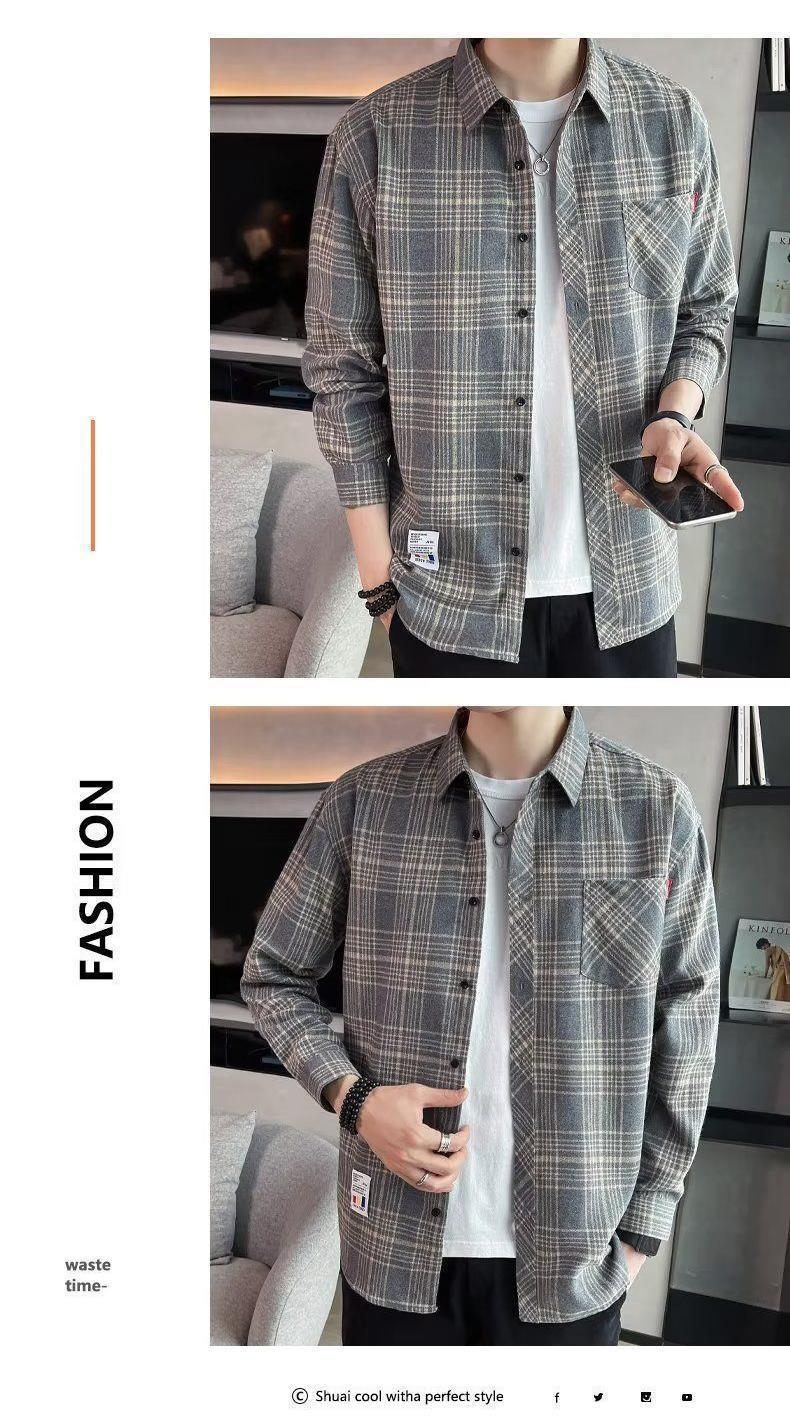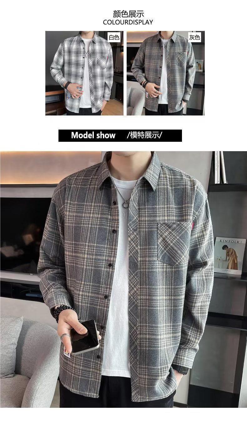 봄과 가을 새로운 유행 격자 무늬 셔츠 남성 긴팔 느슨한 홍콩 스타일 캐주얼 재킷 청소년 남성 탑 유행