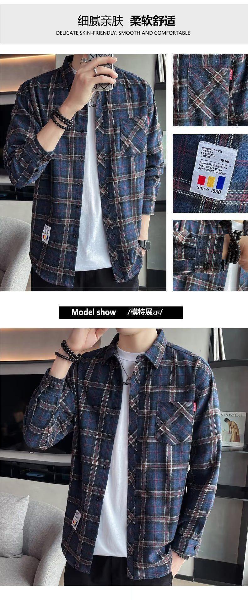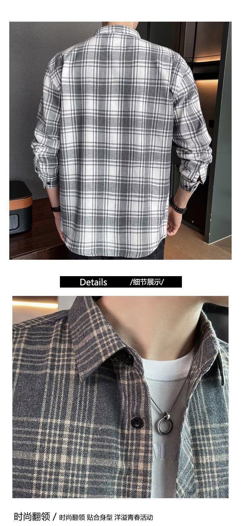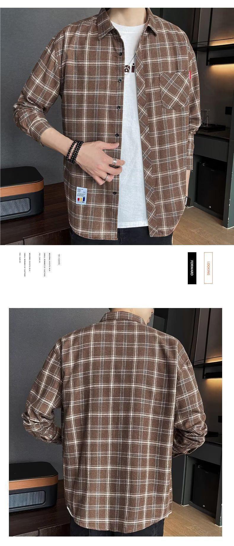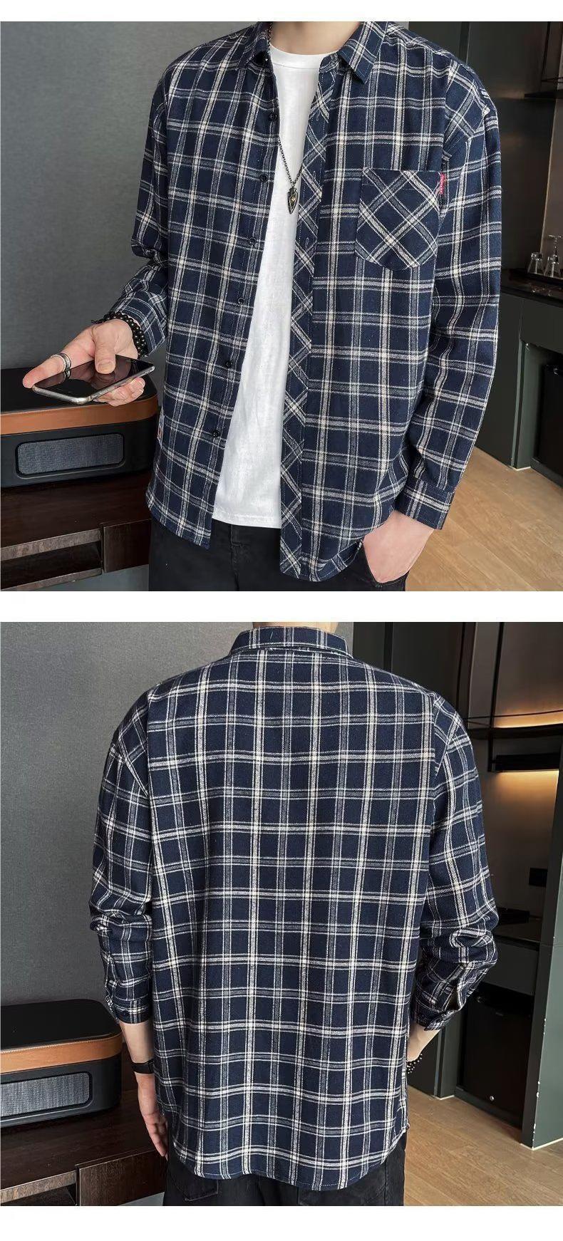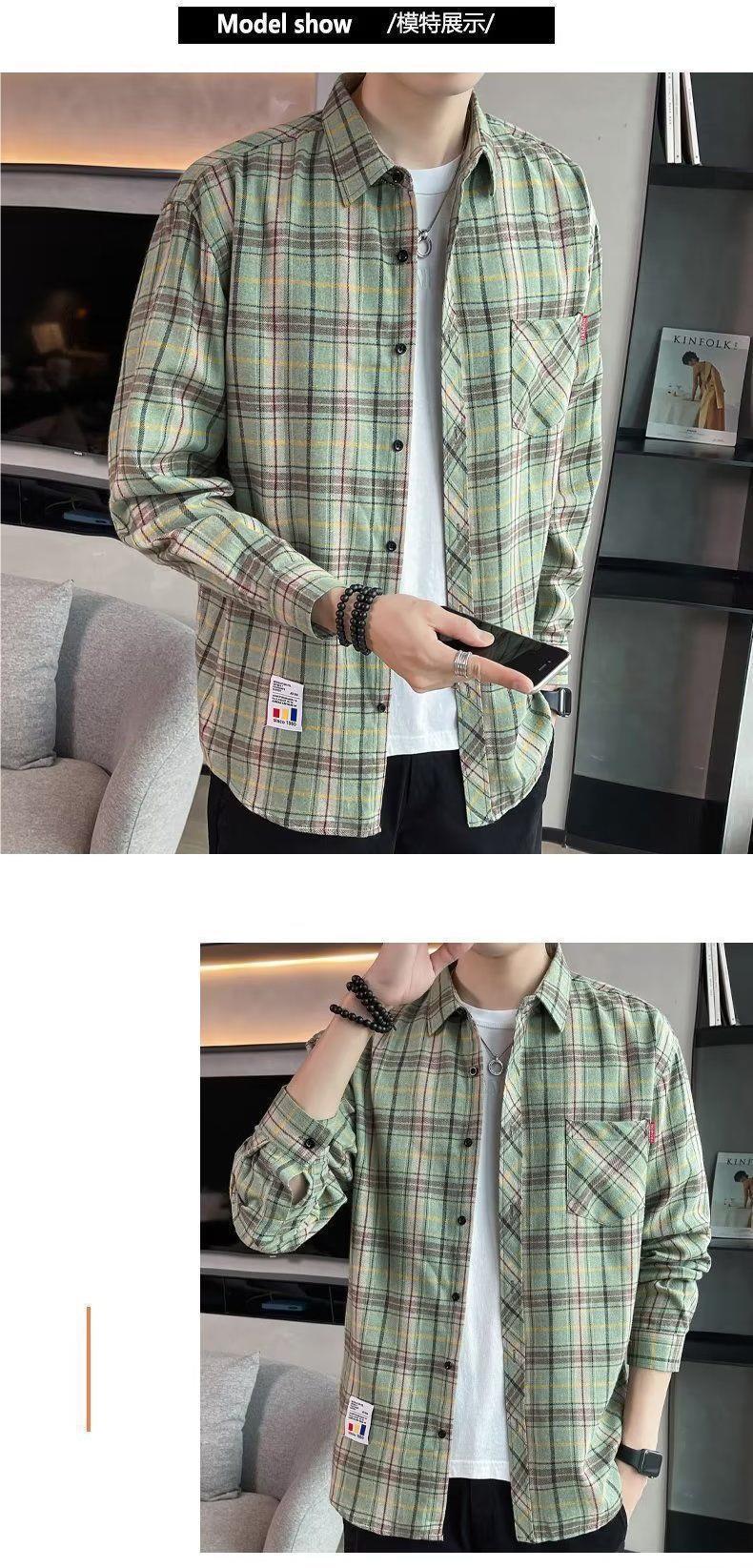 봄과 가을 새로운 유행 격자 무늬 셔츠 남성 긴팔 느슨한 홍콩 스타일 캐주얼 재킷 청소년 남성 탑 유행