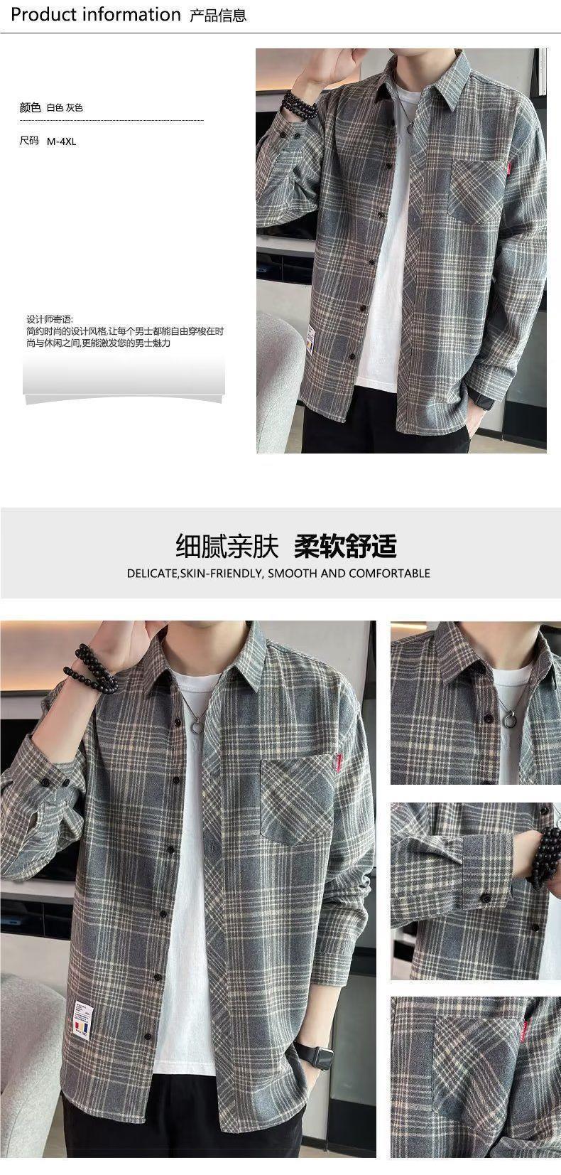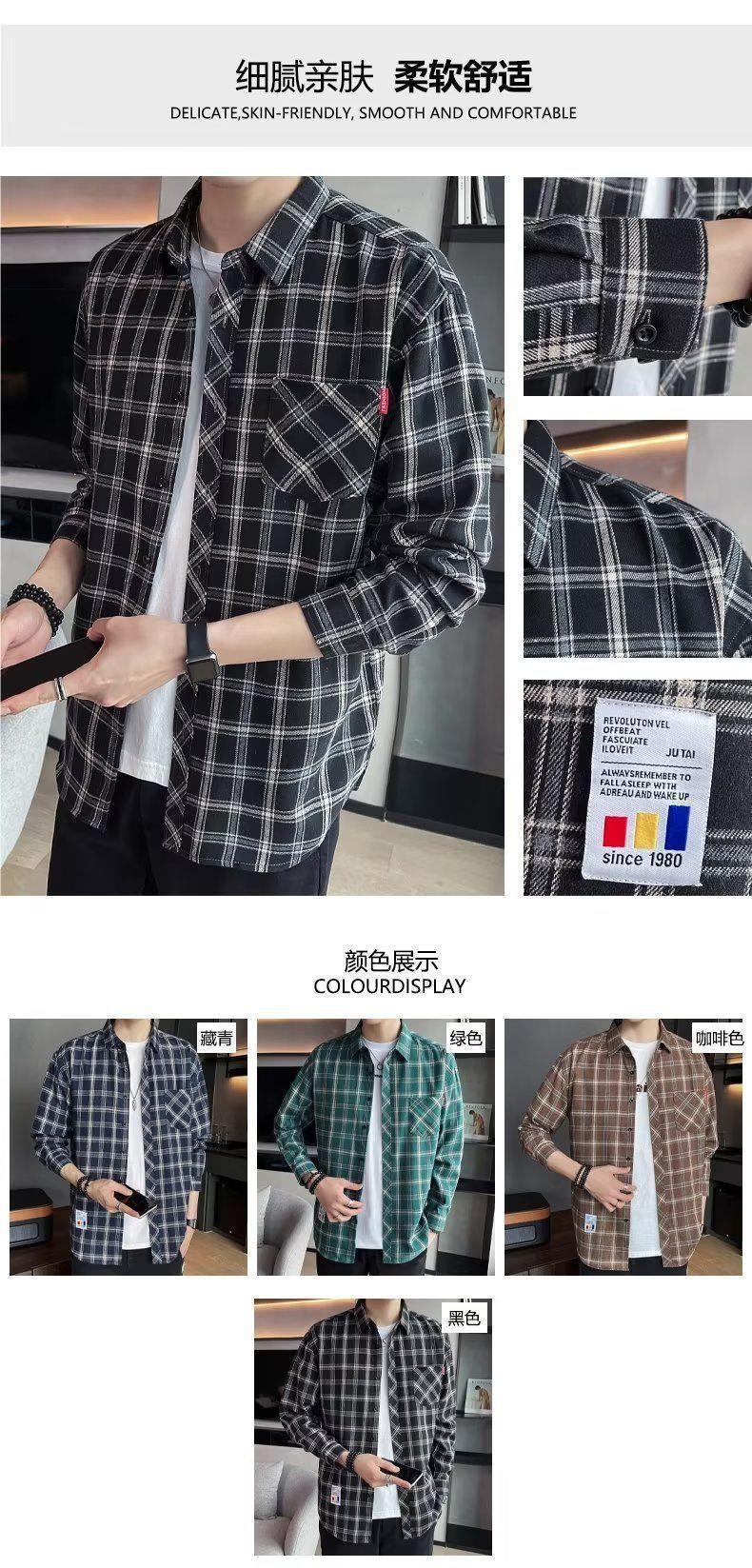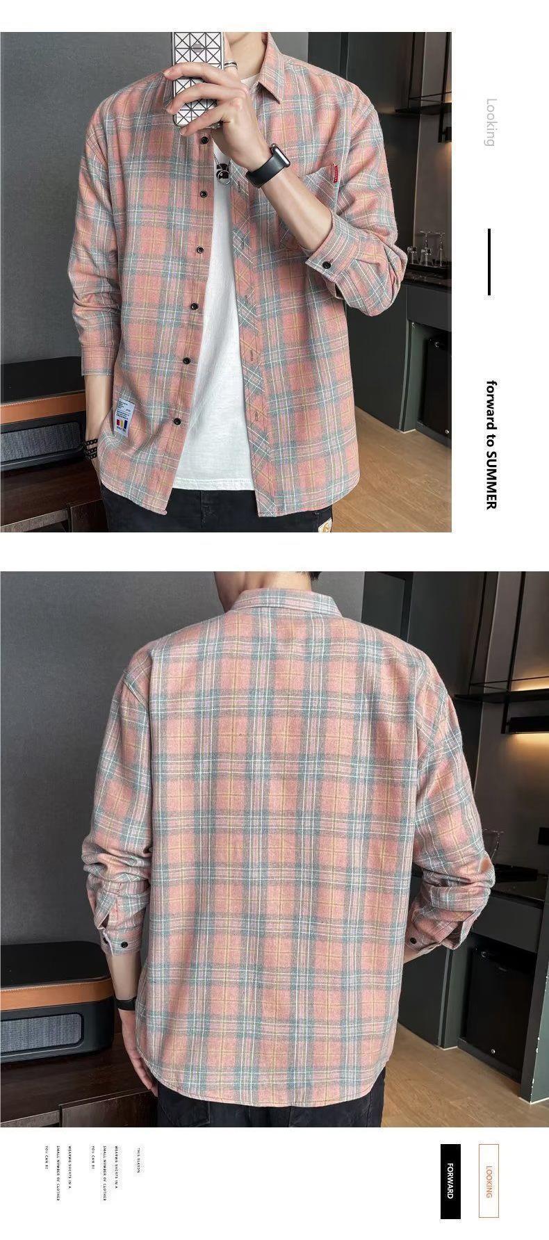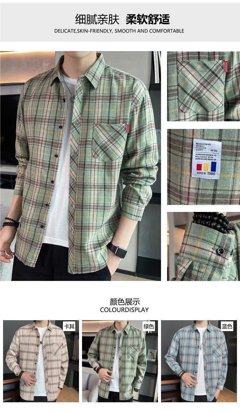 봄과 가을 새로운 유행 격자 무늬 셔츠 남성 긴팔 느슨한 홍콩 스타일 캐주얼 재킷 청소년 남성 탑 유행
