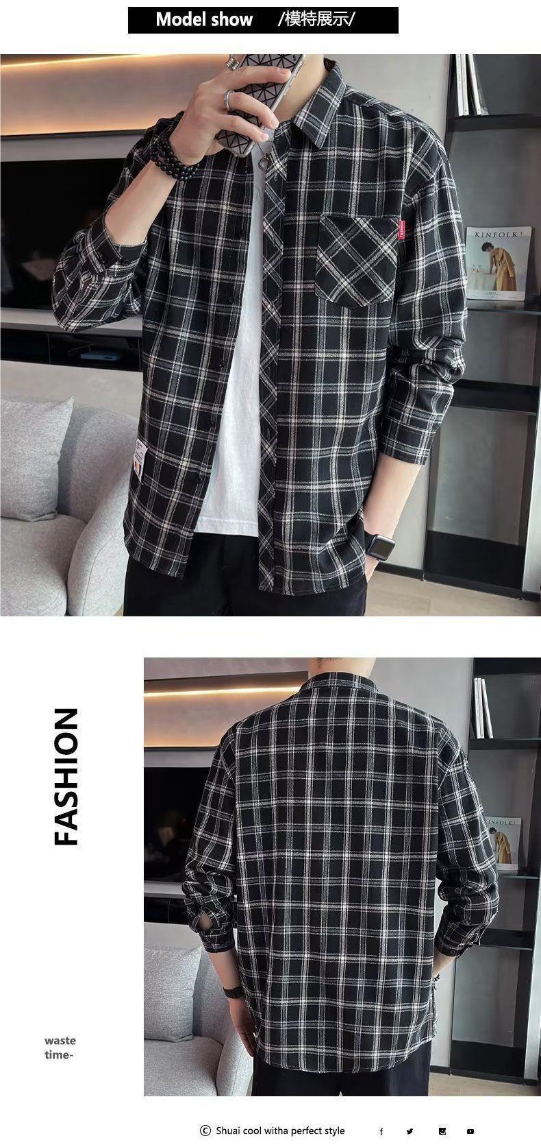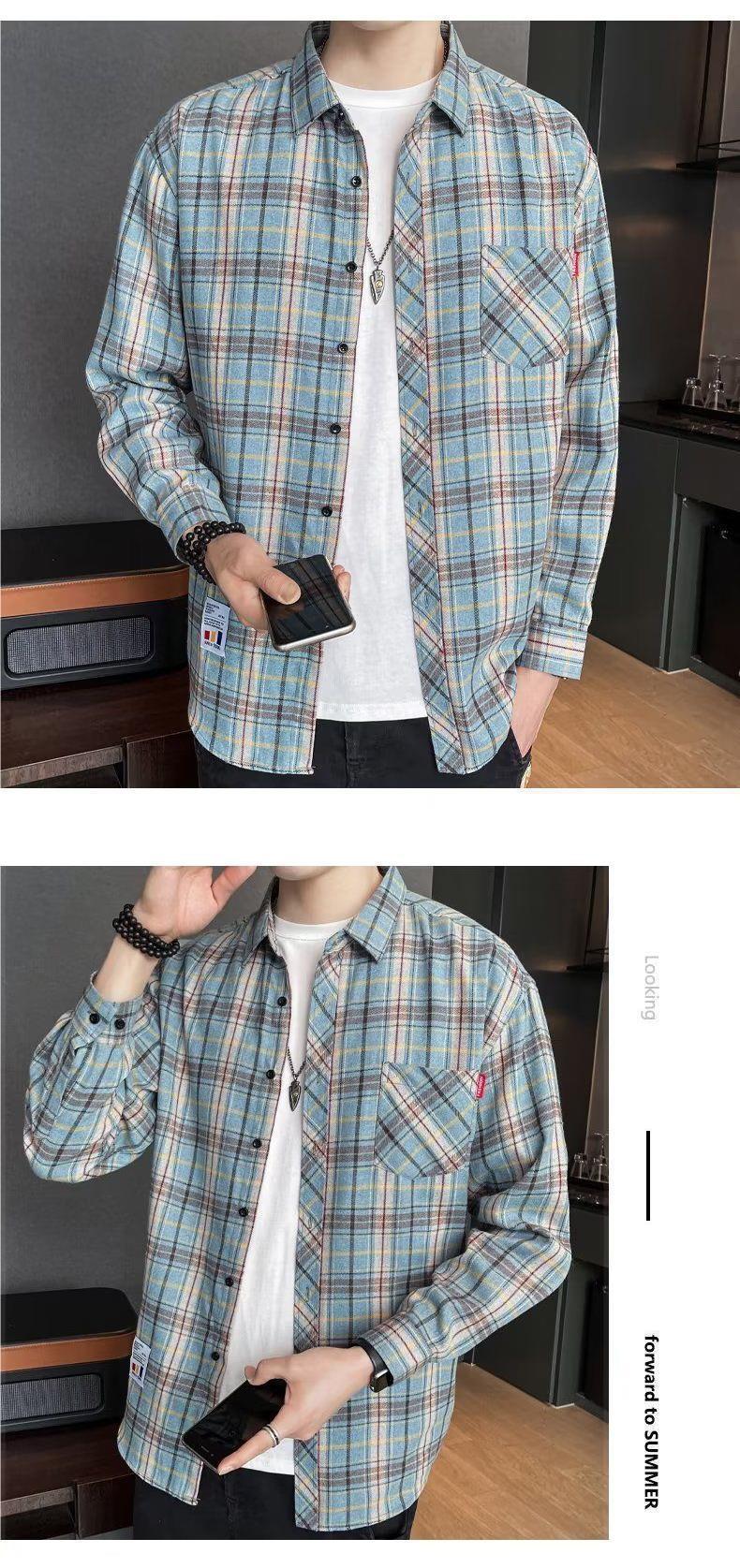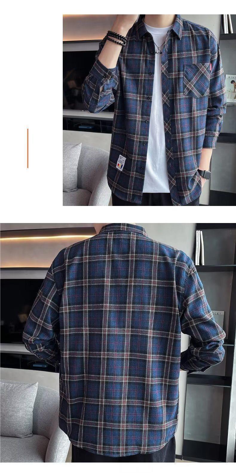 봄과 가을 새로운 유행 격자 무늬 셔츠 남성 긴팔 느슨한 홍콩 스타일 캐주얼 재킷 청소년 남성 탑 유행스토어 가기