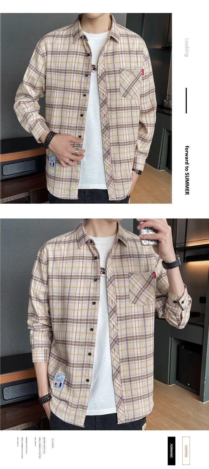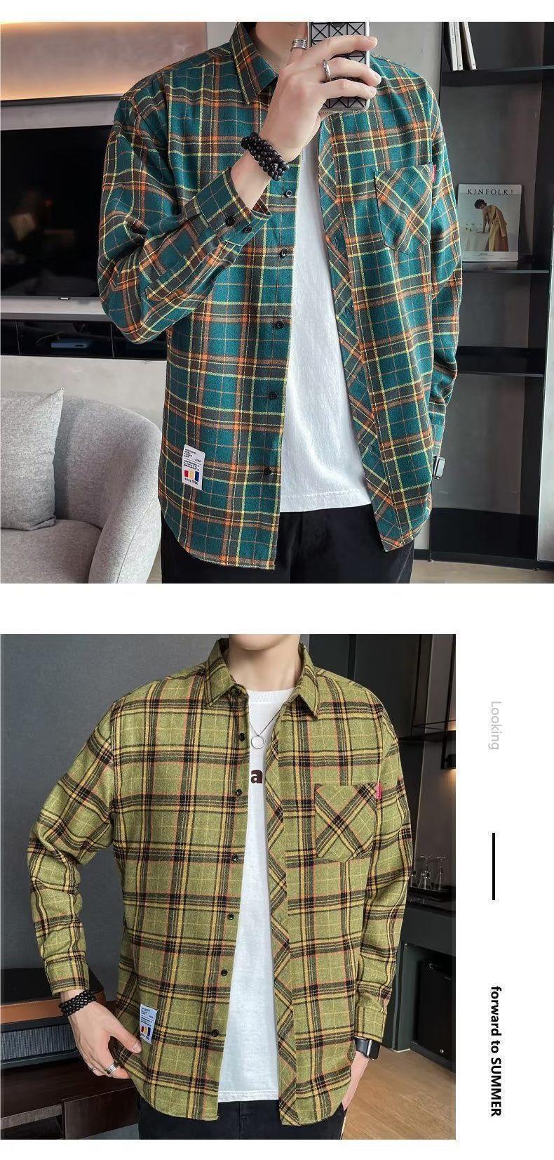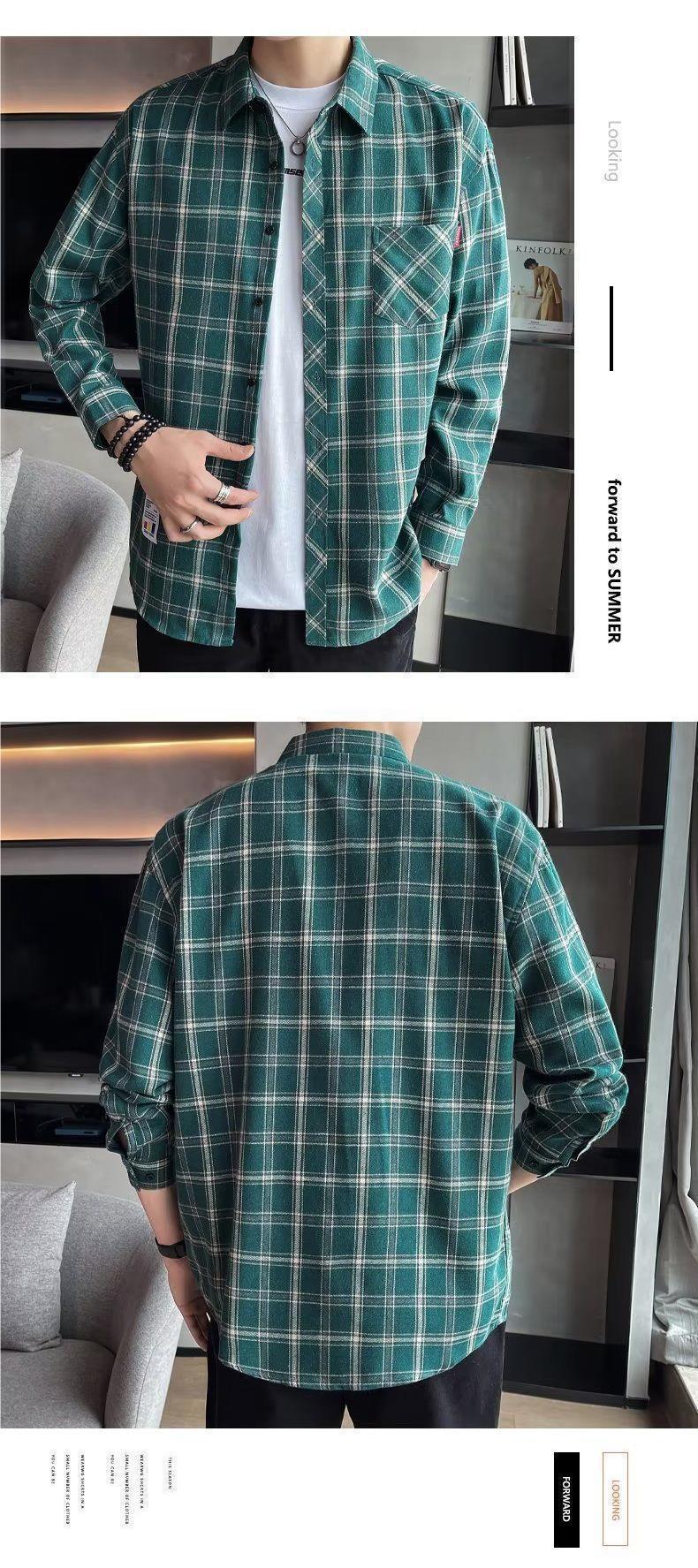봄과 가을 새로운 유행 격자 무늬 셔츠 남성 긴팔 느슨한 홍콩 스타일 캐주얼 재킷 청소년 남성 탑 유행스토어 가기