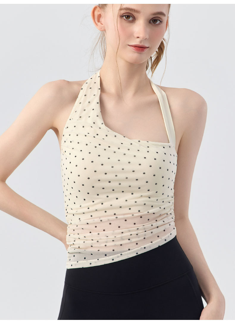 홀터넥 폴카 도트 서스펜더 아름다운 등 요가 조끼 여성용 겉옷 요가 착용 중간 강도 충격 방지 필라테스 피트니스 브라스토어 가기