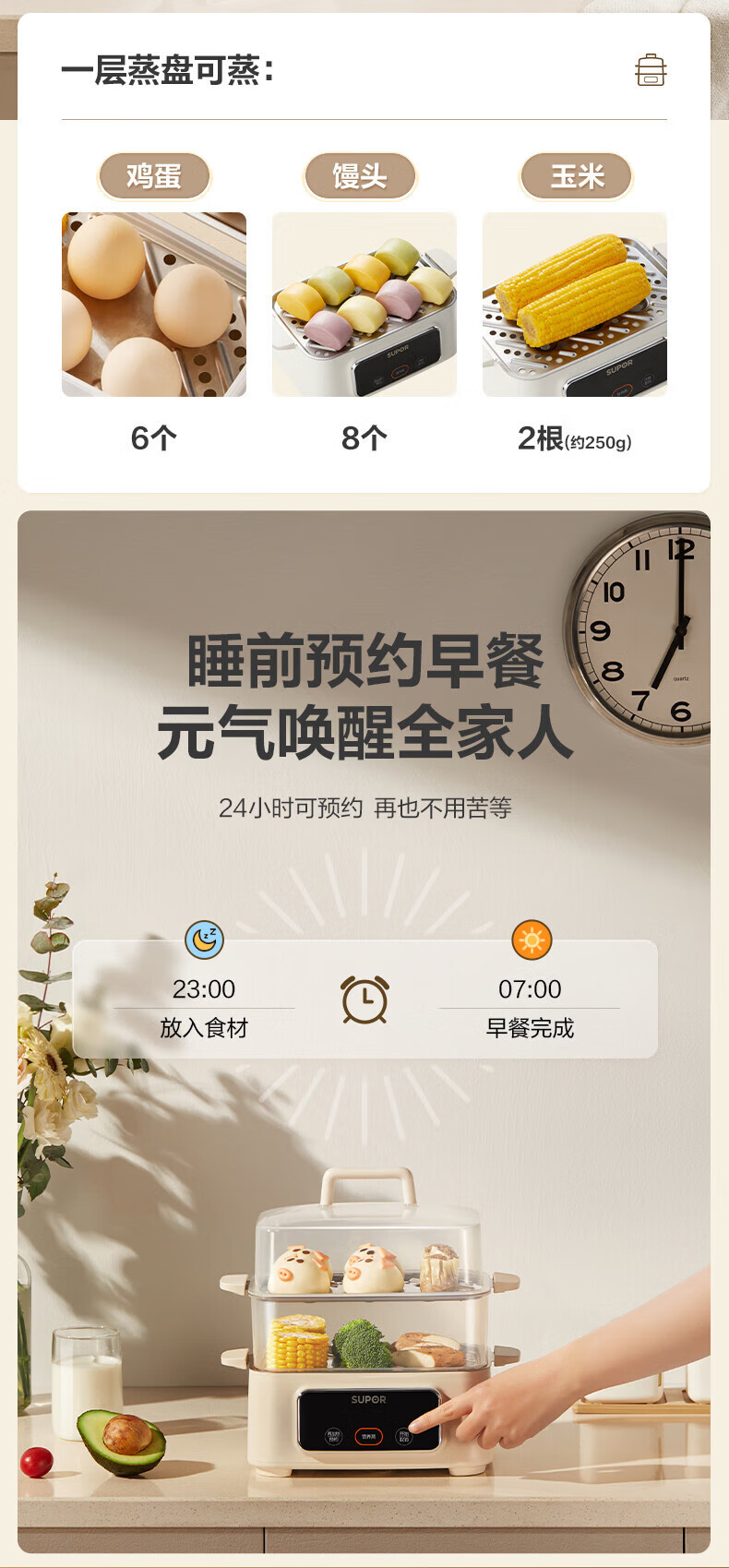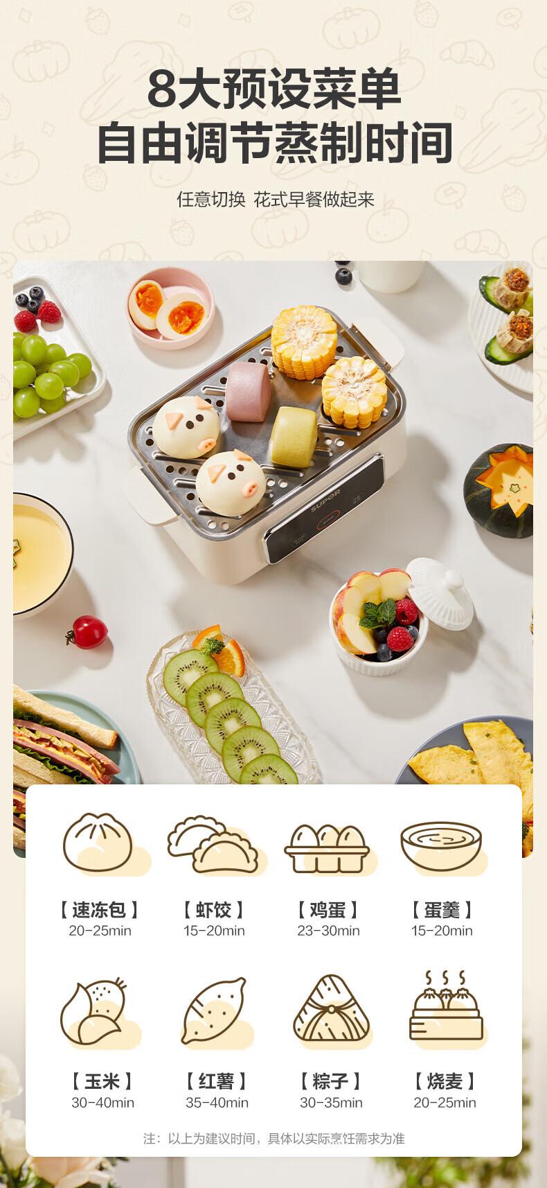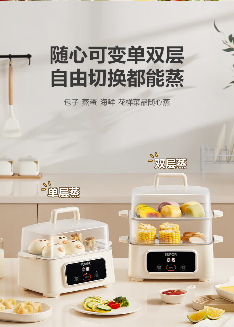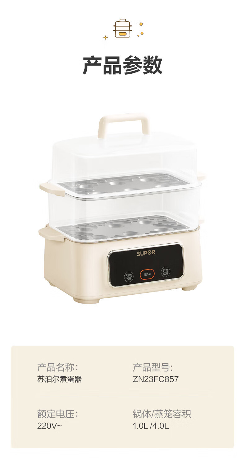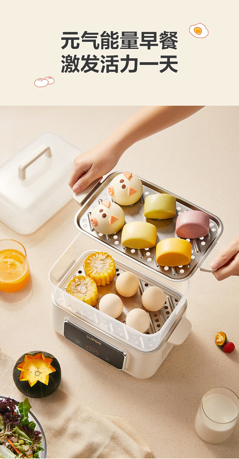 Supor 전기 찜기 소형 계란찜기 다기능 가정용 예약 자동 전원 끄기 ZN23FC857