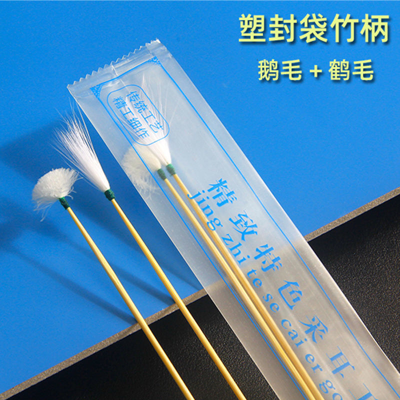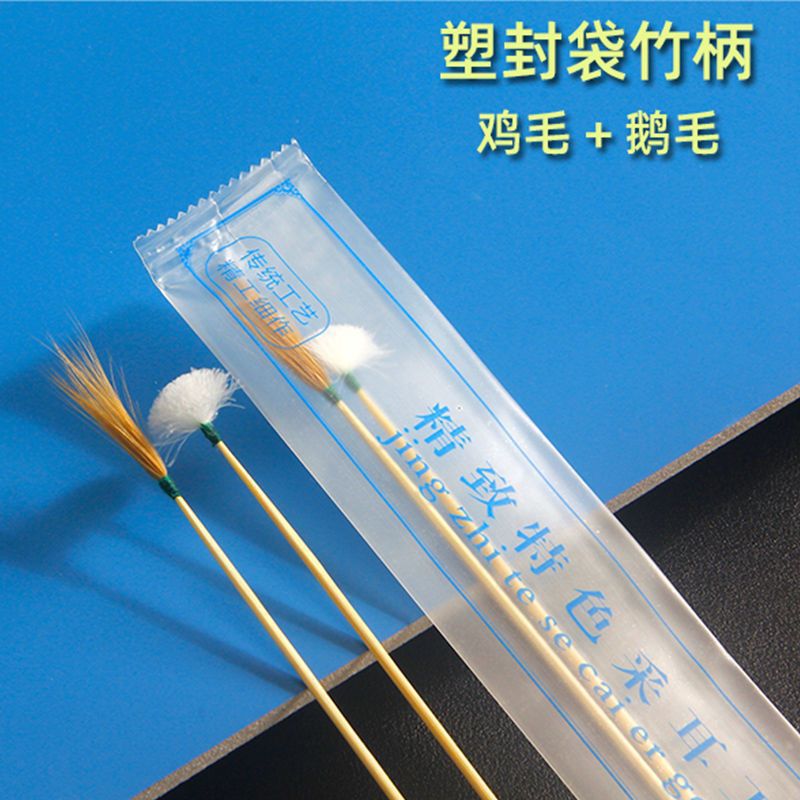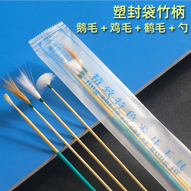 • 대나무 손잡이 [거위털 + 닭털 + 귀숟가락] - 50세트 [각 세트는 비닐봉지에 포장되어 있습니다.]