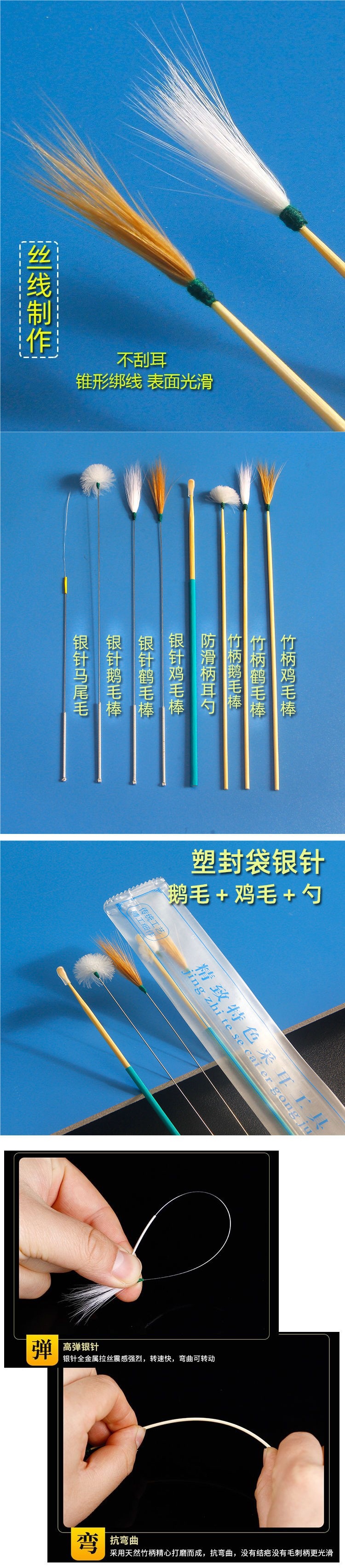 전문 귀 따기 도구, 닭털 막대, 거위털 귀 따기, 깃털, 은침, 포니테일 막대, 크레인털 풀 세트스토어 가기