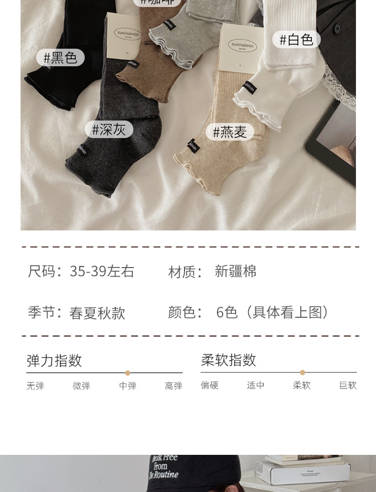 Suxinaimin 봄 여름 얇은 반 손바닥 천 레이블 종아리 양말 맞춤형 다용도 싱글 발 양말 간단한 얇은 줄무늬 양말스토어 가기