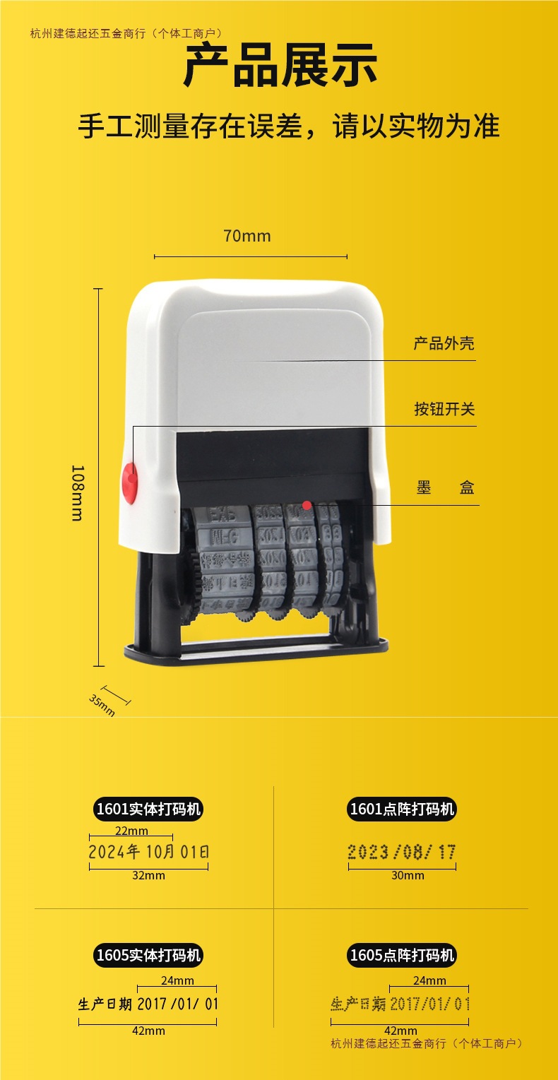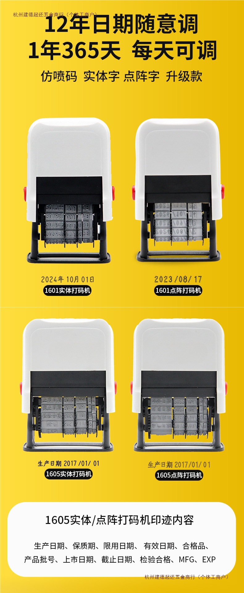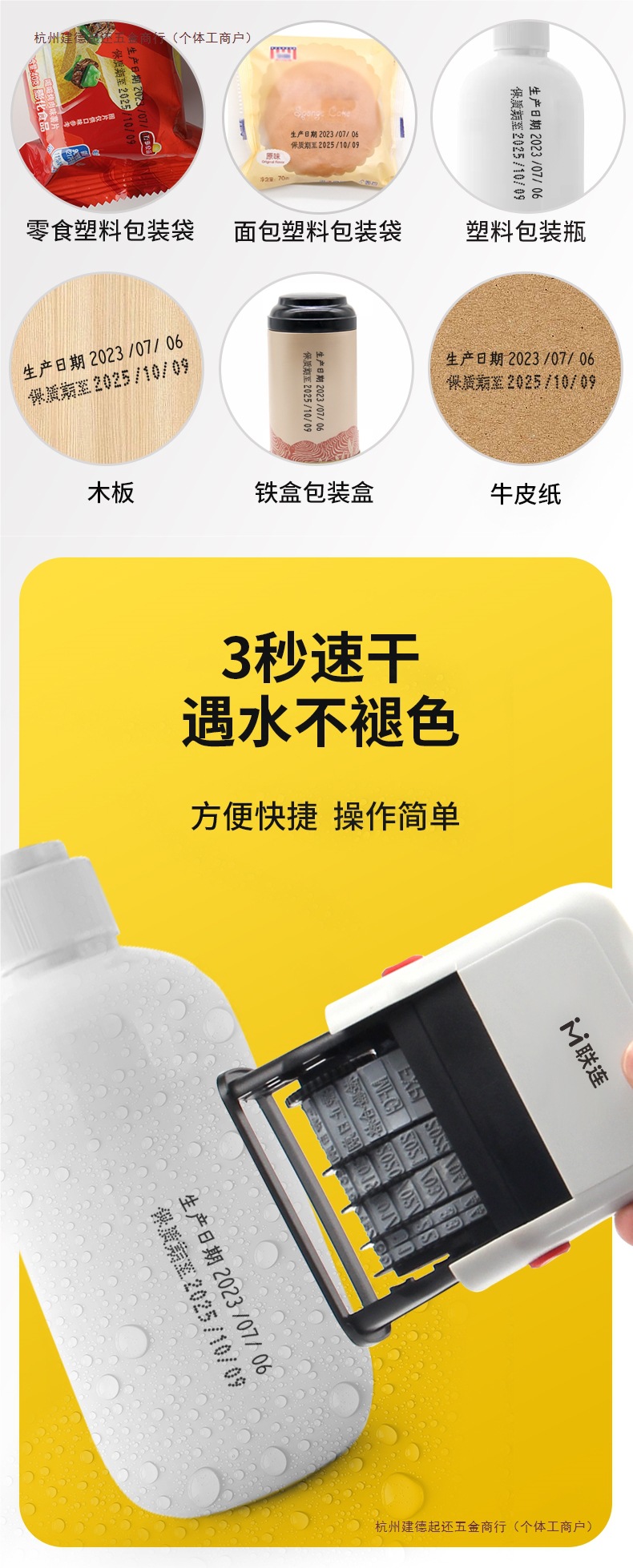 생산 날짜를 인쇄하는 Lianlian 코딩 기계, 소형 휴대용 수동 조절 가능한 연월일 스탬프, 카톤 잉크 수정