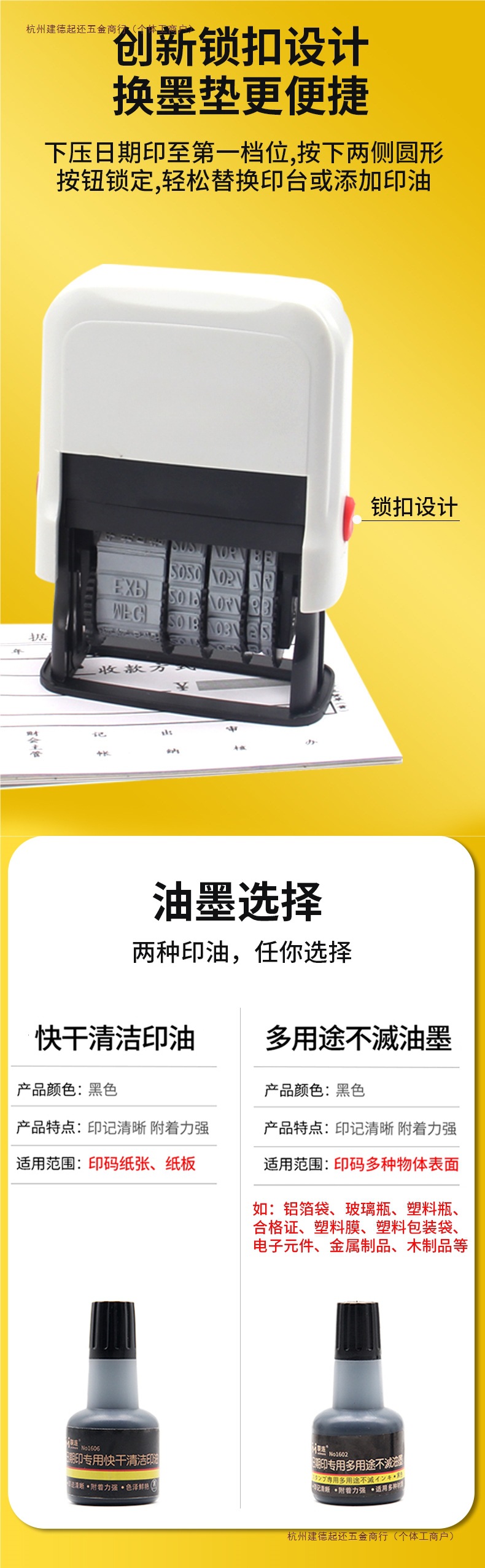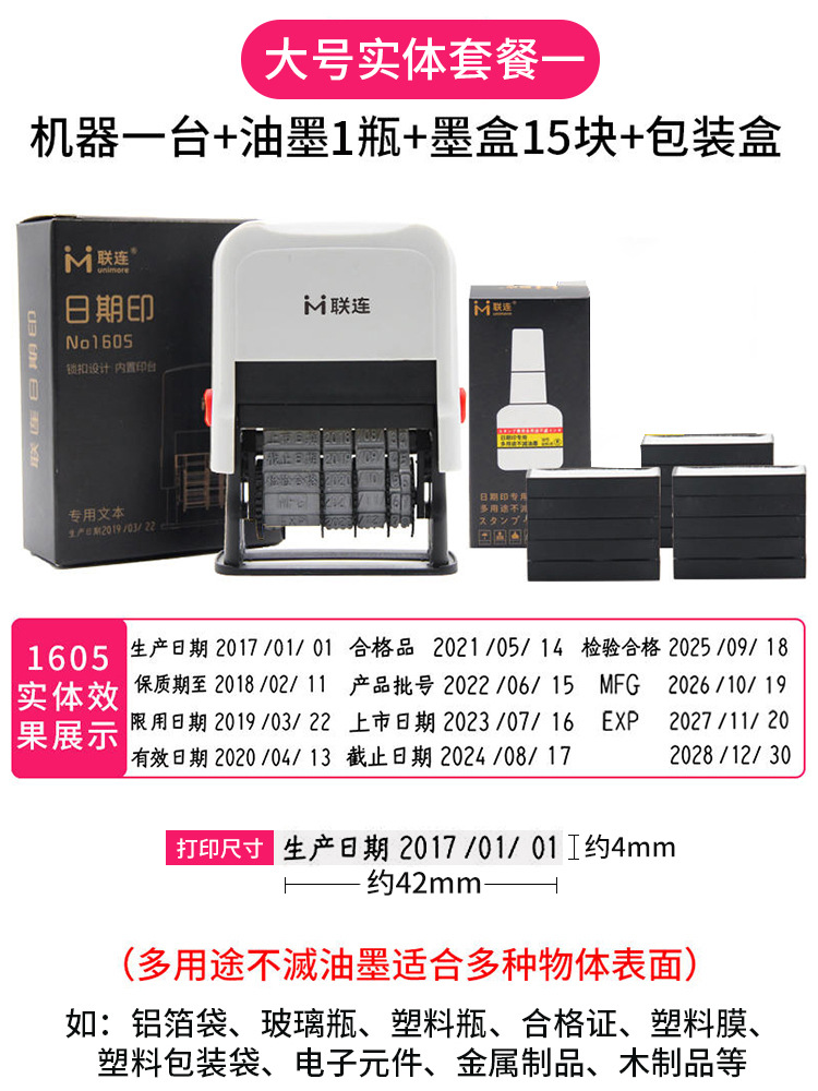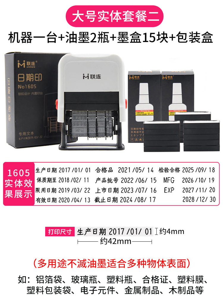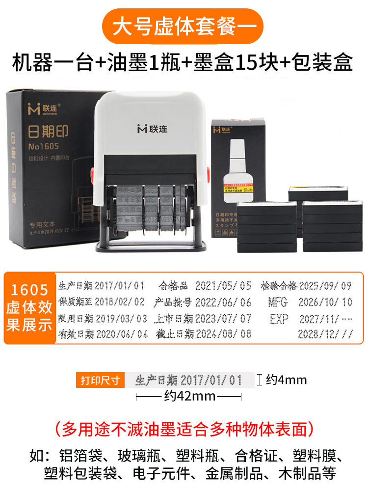 생산 날짜를 인쇄하는 Lianlian 코딩 기계, 소형 휴대용 수동 조절 가능한 연월일 스탬프, 카톤 잉크 수정