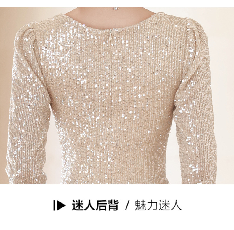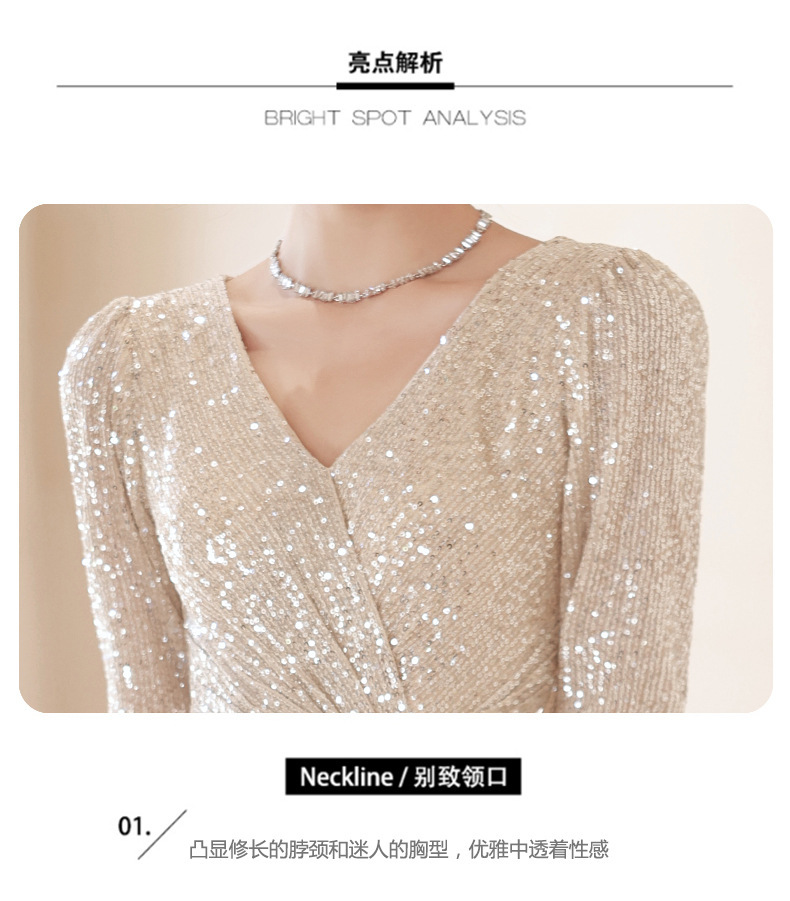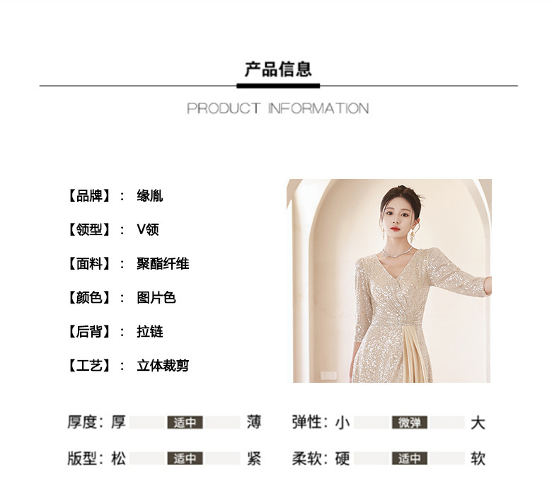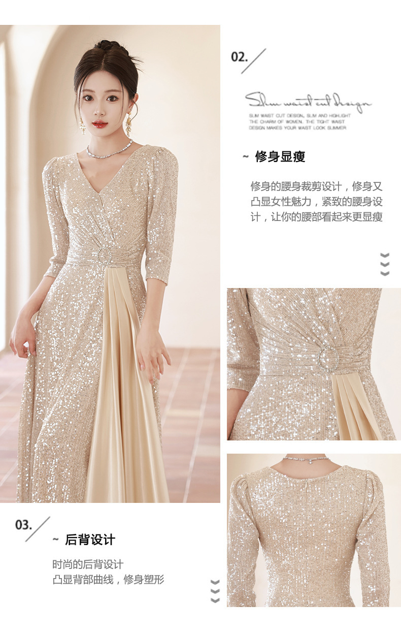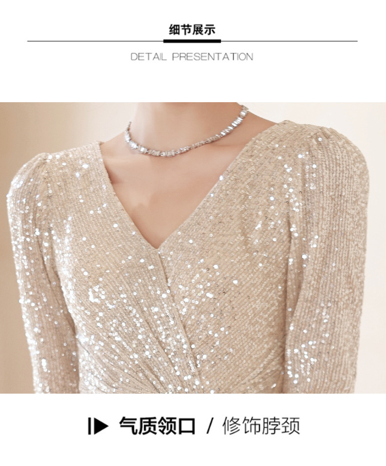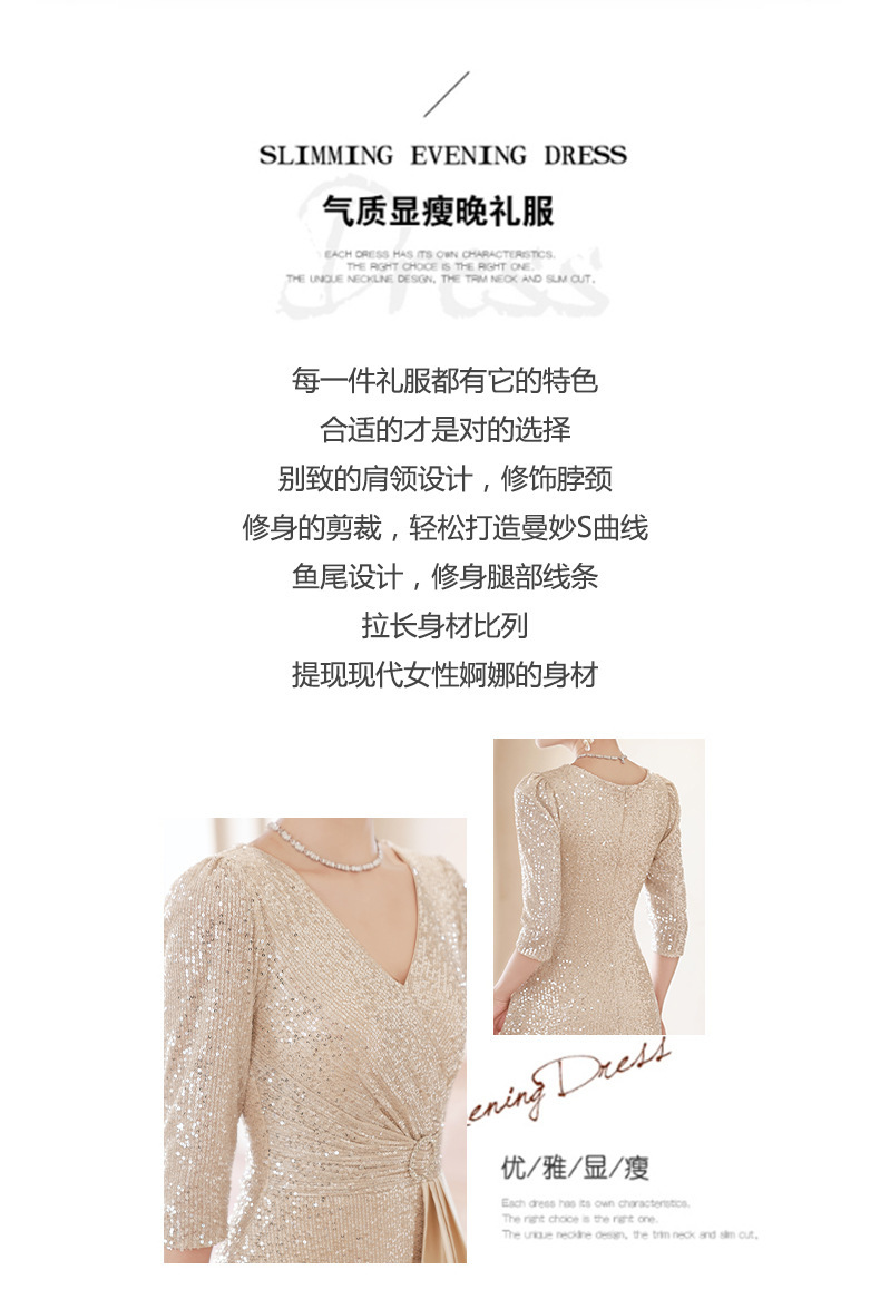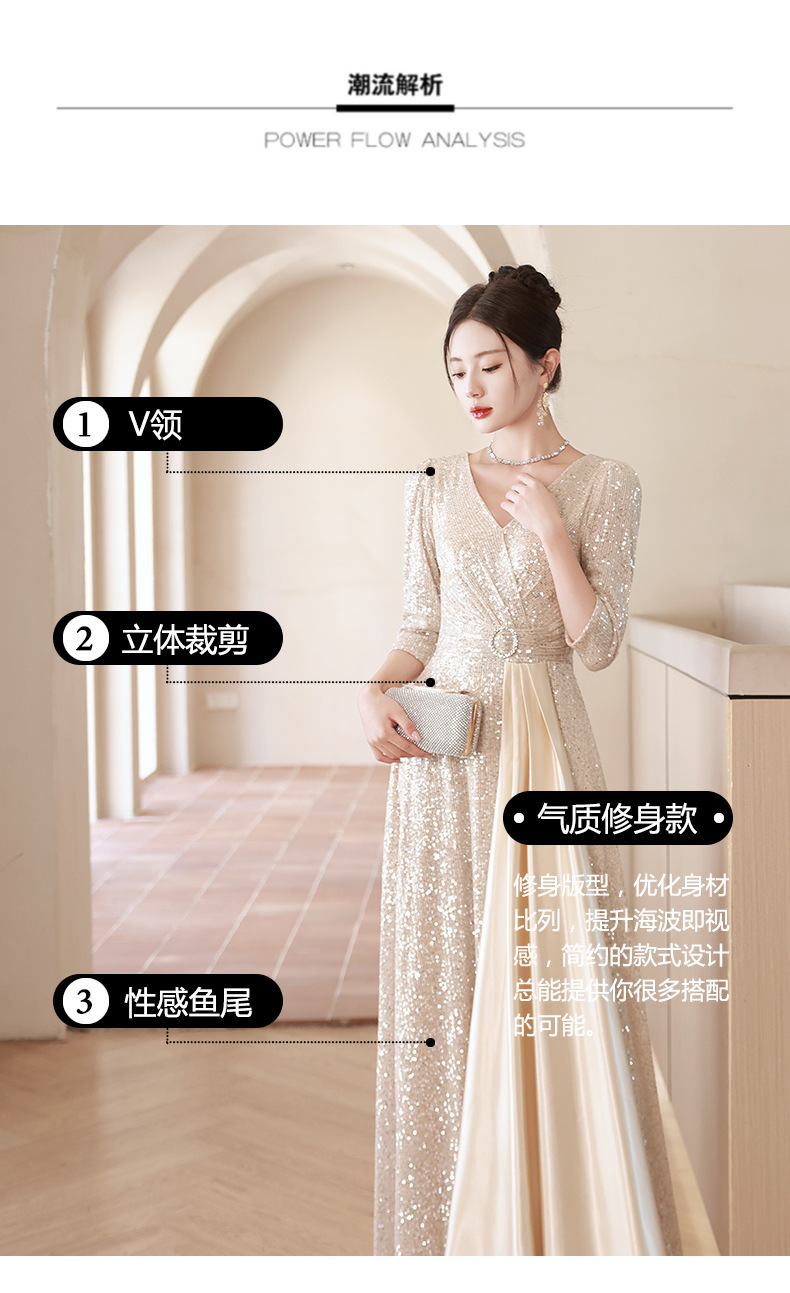 여성을위한 샴페인 컬러 이브닝 드레스 2024 새로운 스타일 하이 엔드 기질 라이트 럭셔리 틈새 하이 엔드 호스트 스팽글 퍼포먼스 드레스