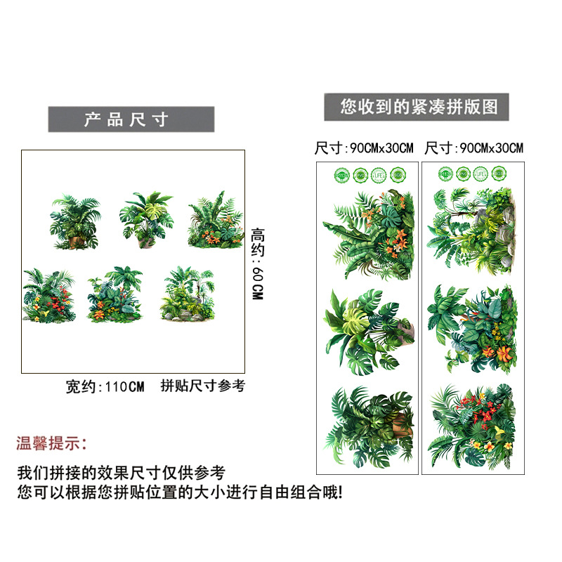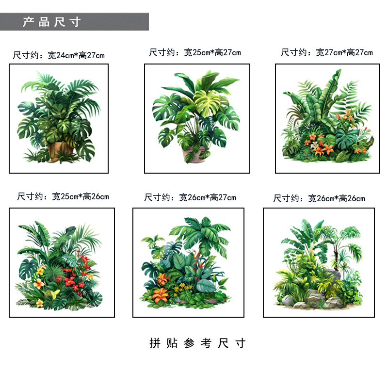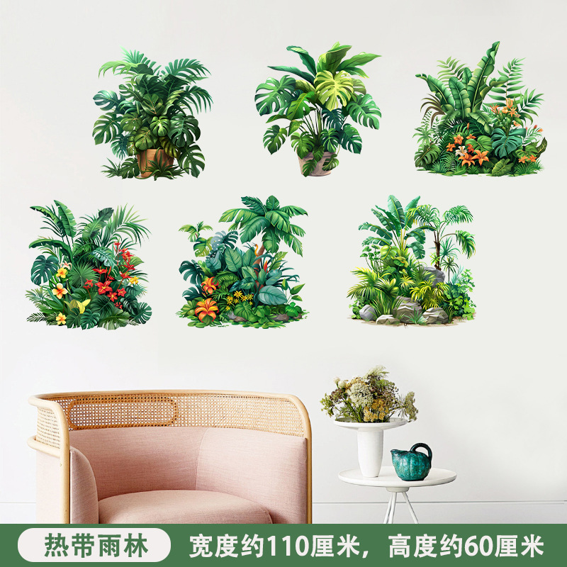 ML9113AB 새로운 녹색 식물 녹색 잎 화분 자체 접착 방수 벽 스티커 거실 침실 홈 장식 벽 스티커스토어 가기