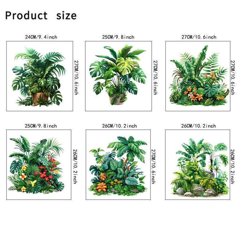 ML9113AB 새로운 녹색 식물 녹색 잎 화분 자체 접착 방수 벽 스티커 거실 침실 홈 장식 벽 스티커