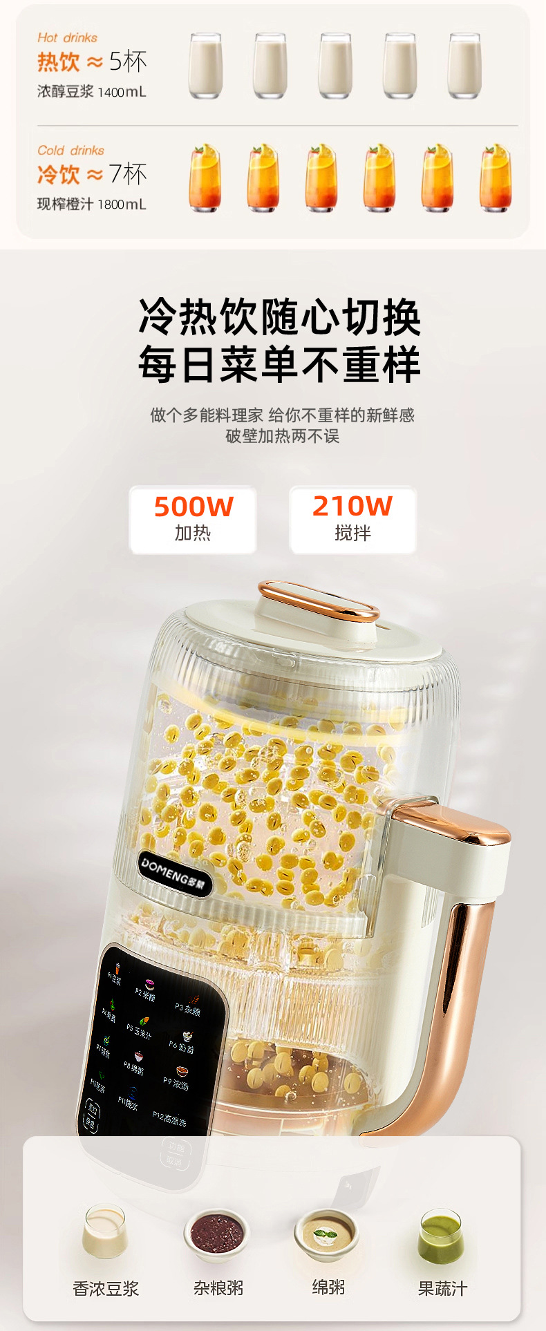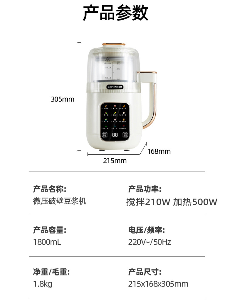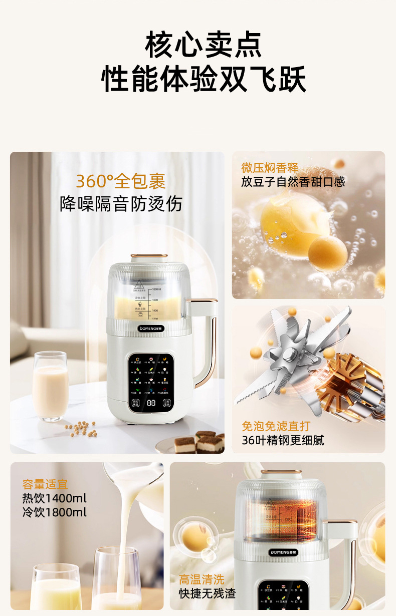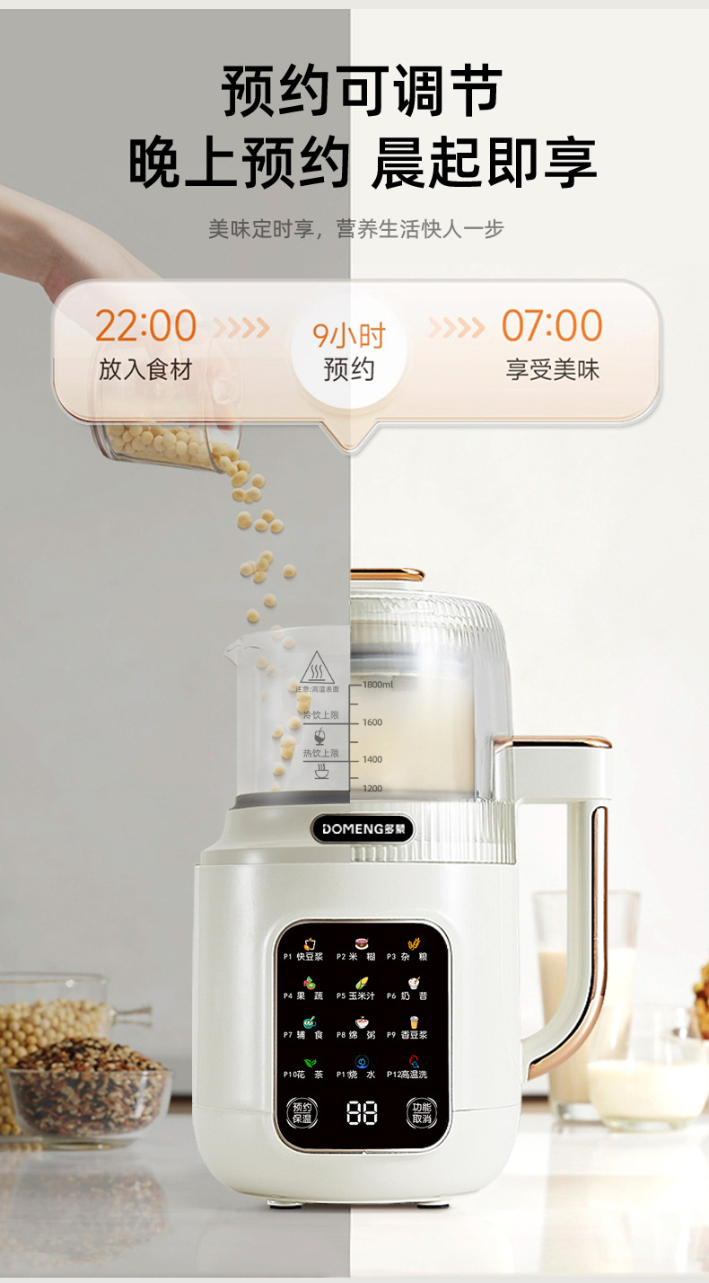 Domon 두유 기계 가정용 완전 자동 조리 없음 소형 다기능 미니 쌀 시리얼 보충제 파괴 기계