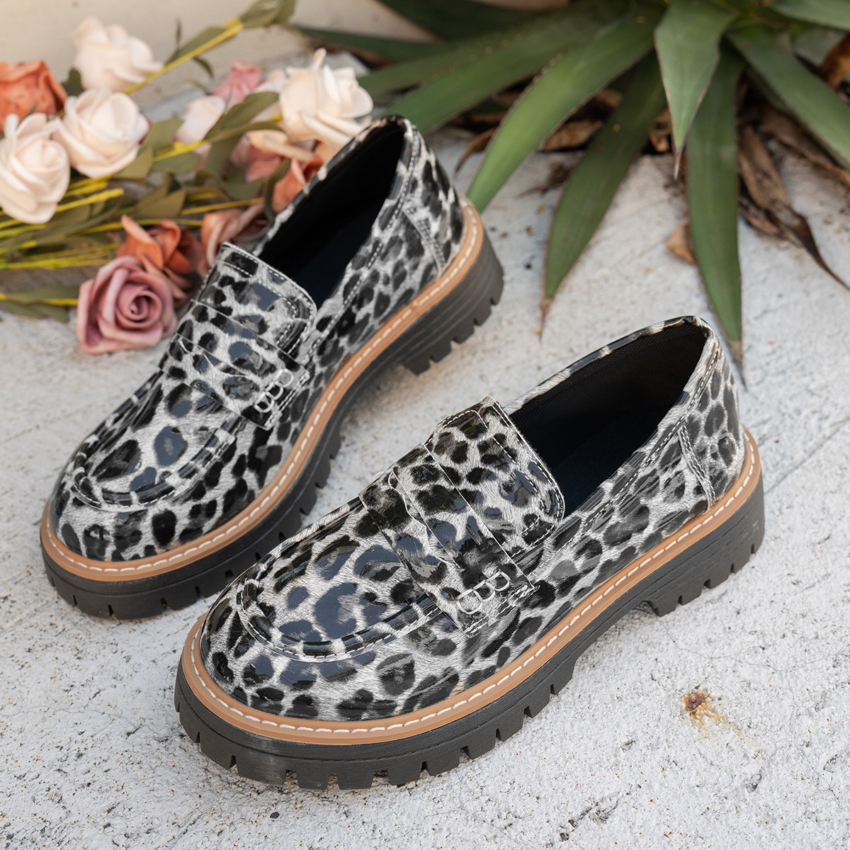 대외 무역 대형 영국 스타일 골드 작은 가죽 신발 여성 가을 새로운 일본 로퍼 두꺼운 밑창 신발 도매