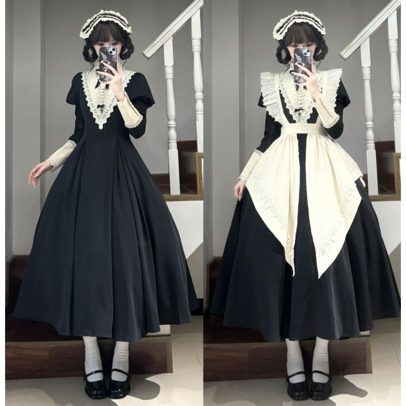 다크 로리타 슈트 봄 신작 디자인 메이드 앞치마 하이 엔드 퍼프 슬리브 로리타 드레스