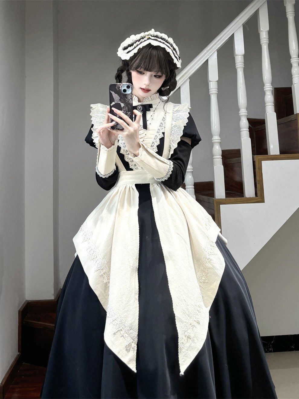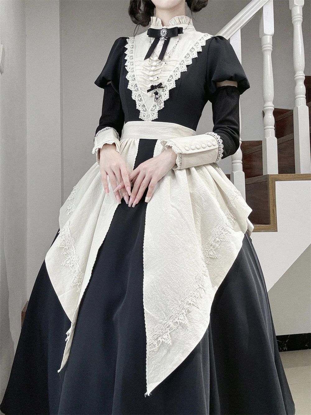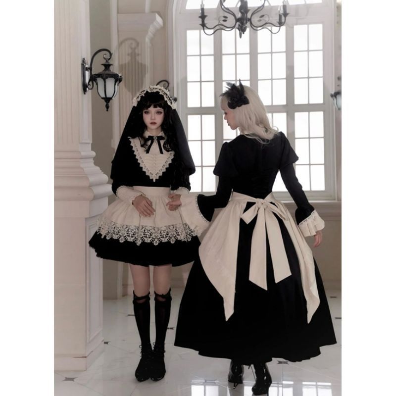 다크 로리타 슈트 봄 신작 디자인 메이드 앞치마 하이 엔드 퍼프 슬리브 로리타 드레스스토어 가기