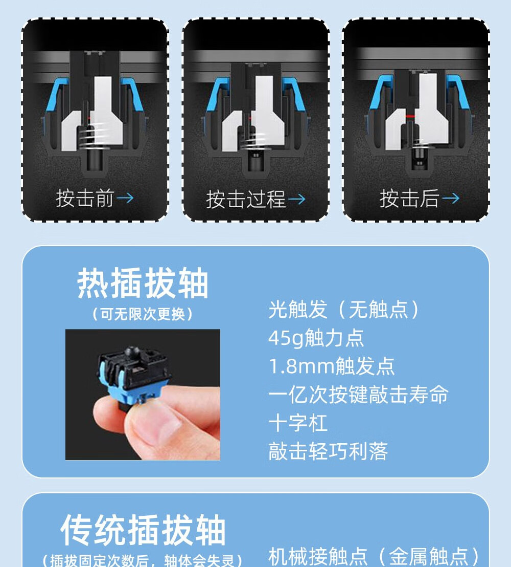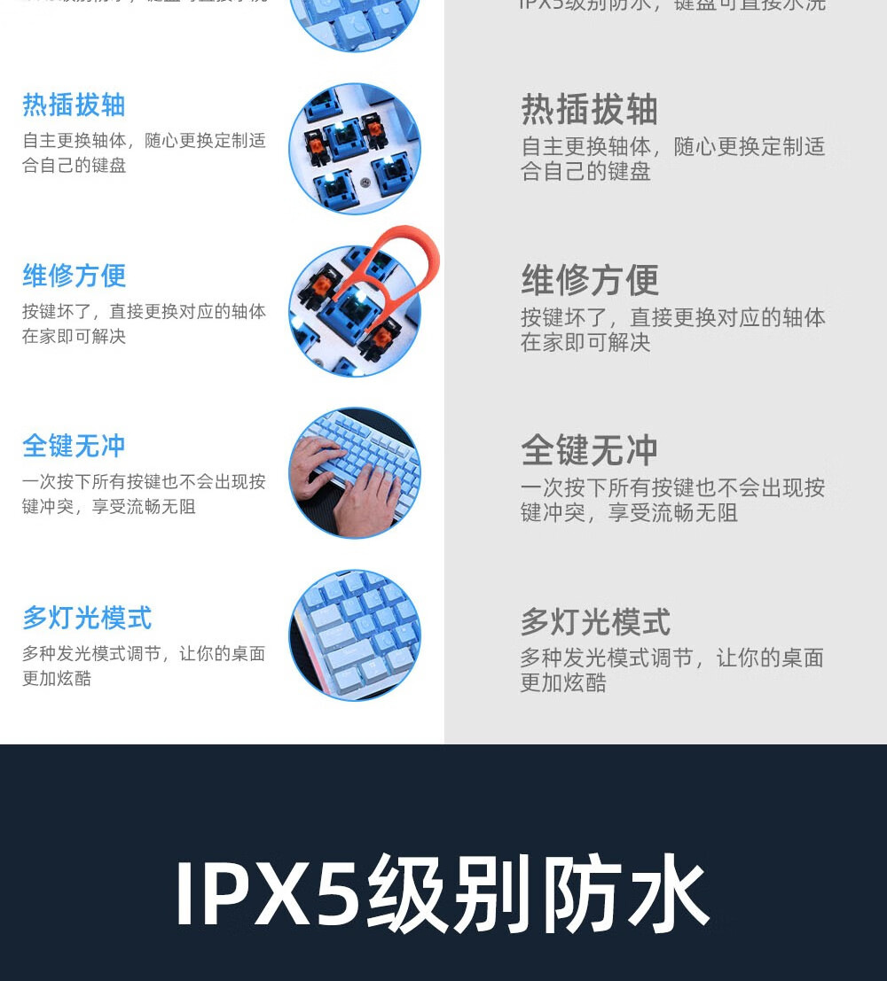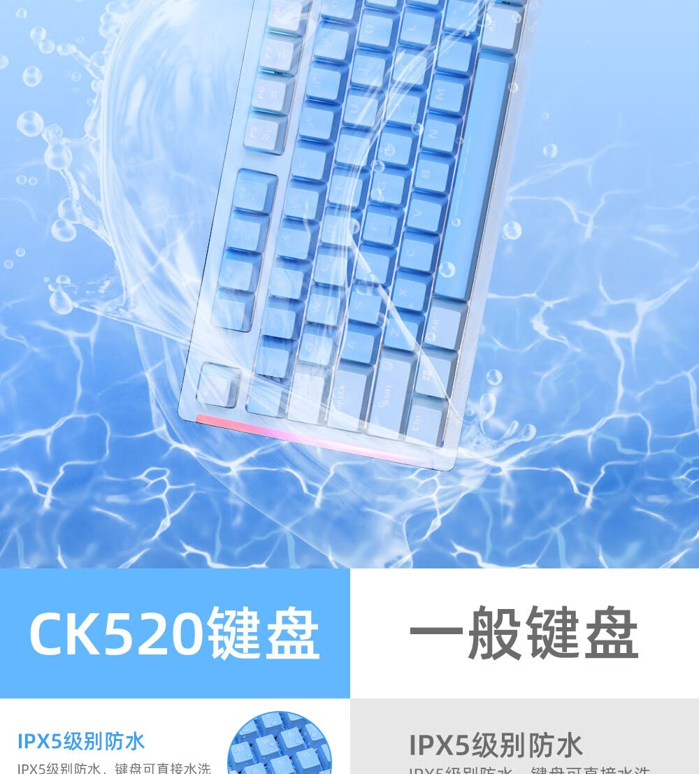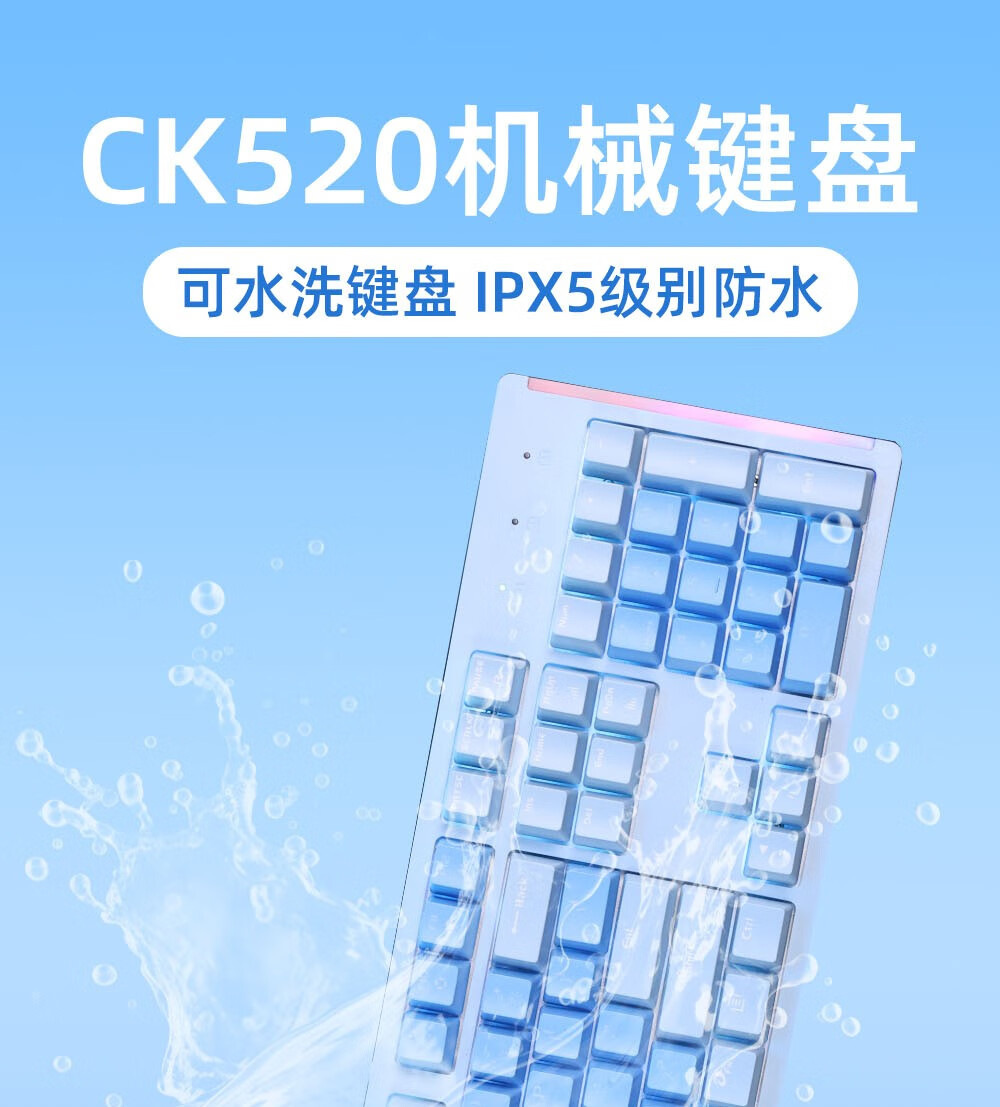 CK520 광학 축 게임용 기계식 키보드 방수 및 세척 가능 Esports 6색 혼합 조명 게임용 키보드 풀 키 무버버스토어 가기