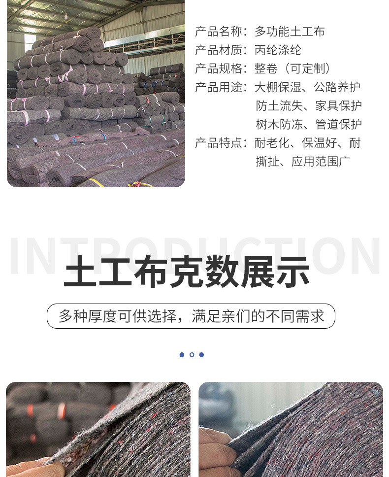 工程土工布大棚保温棉被黑心棉混凝土路面保湿养护家具包装毛毡布스토어 가기
