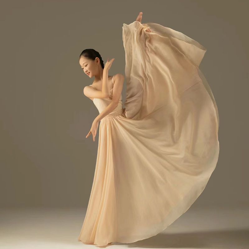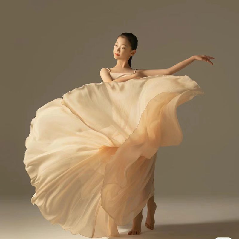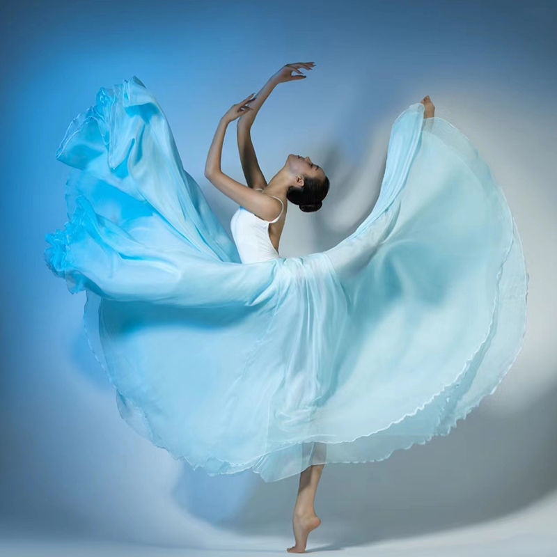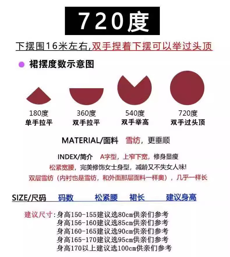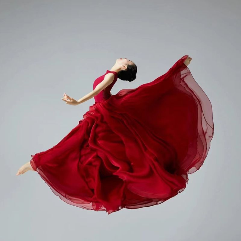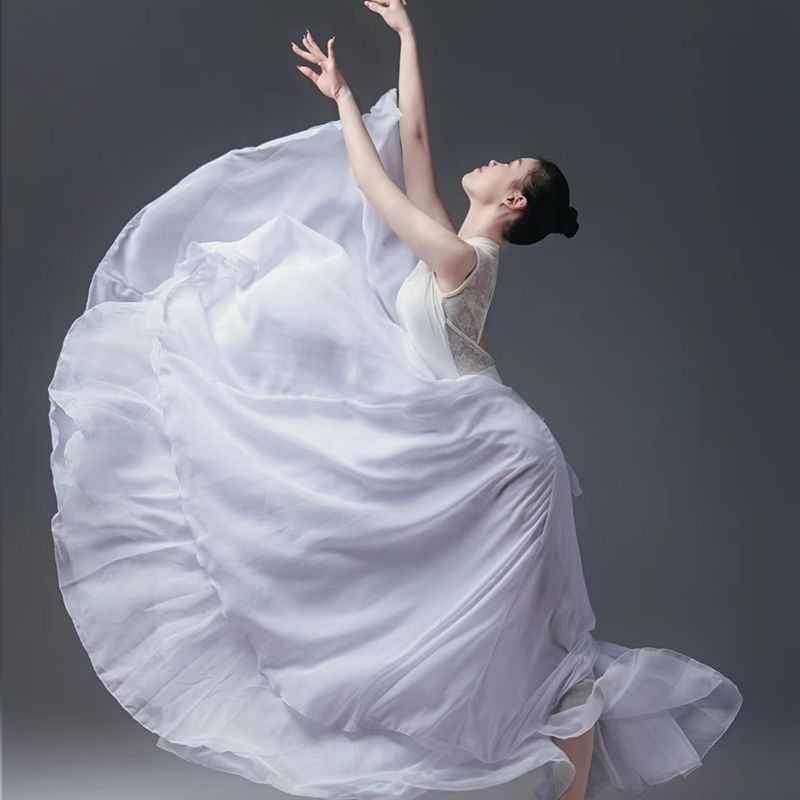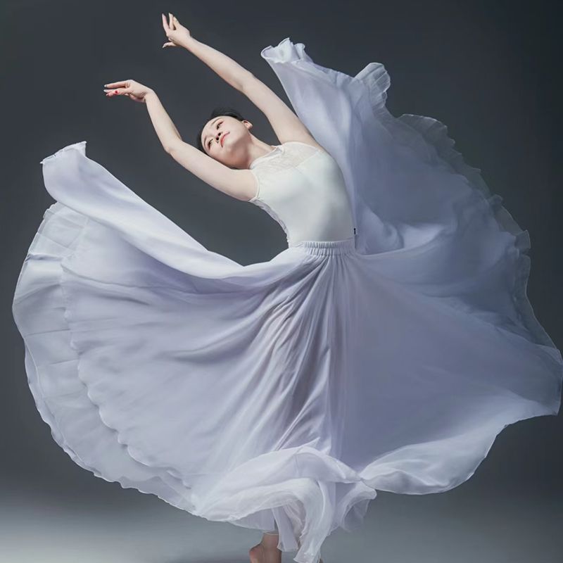 720도 클래식 댄스 우아한 대형 스윙 스커트 여성 더블 레이어 쉬폰 스커트 빨간색과 흰색 신장 광장 댄스 의상스토어 가기