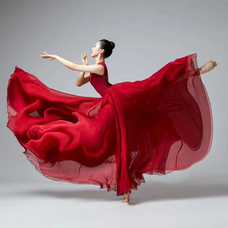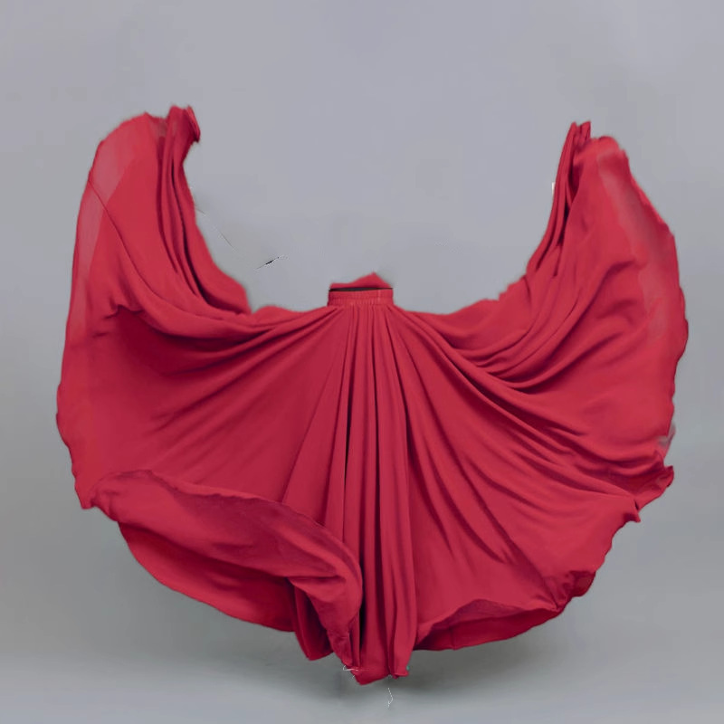 720도 클래식 댄스 우아한 대형 스윙 스커트 여성 더블 레이어 쉬폰 스커트 빨간색과 흰색 신장 광장 댄스 의상