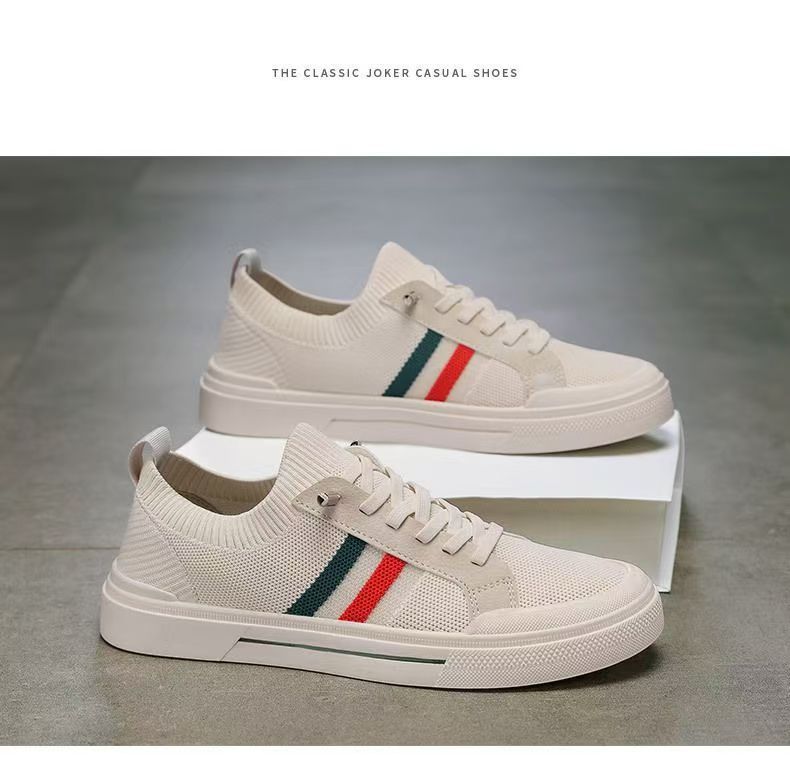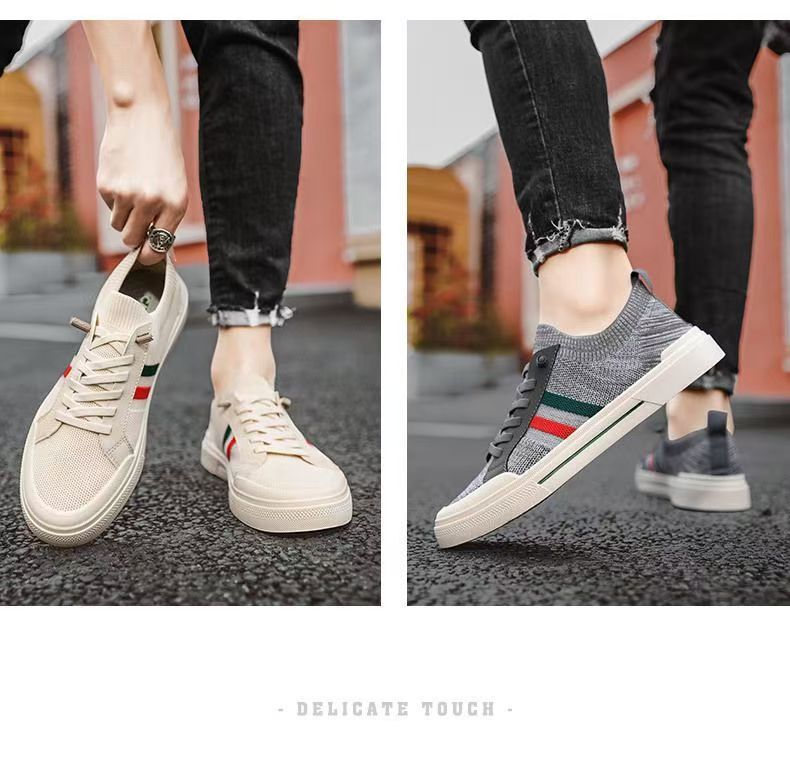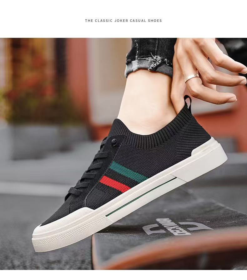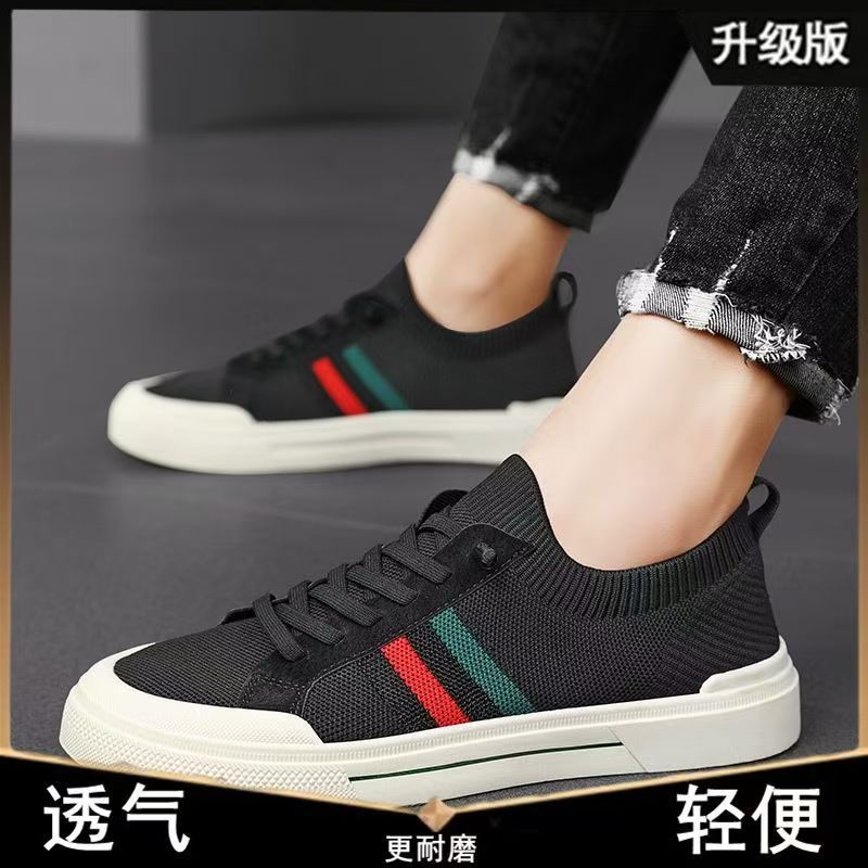 남성 신발 여름 통기성 경량 가을 메쉬 스포츠 플라이 니트 플랫 신발 남성 부드러운 밑창 슬립 온 캐주얼 트렌디 신발스토어 가기