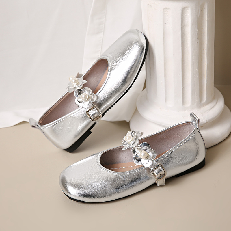 페어리 스타일 스퀘어 토 펌프스 2025 새로운 디자인 플라워 펄 버클 플랫 메리 제인 슈즈