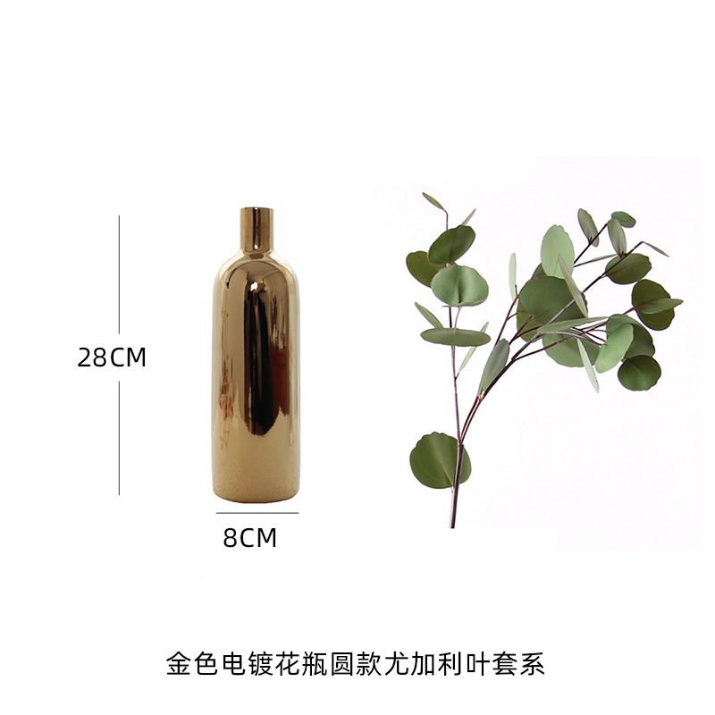 • 金色电镀花瓶圆款尤加利叶套系