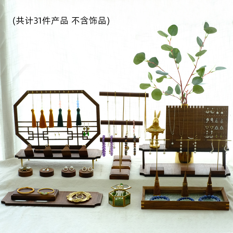 项链饰品展示耳环多功能拍照陈列胡桃木手串首饰展示架收纳架道具스토어 가기