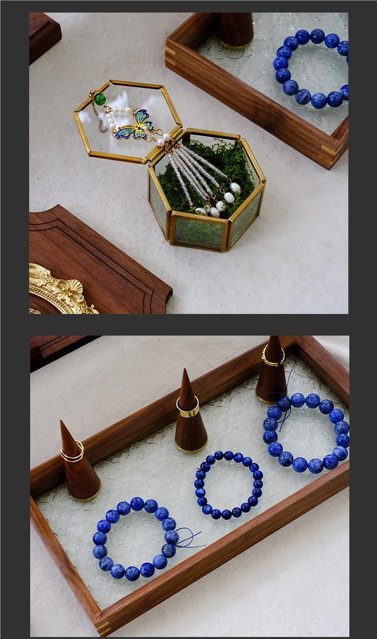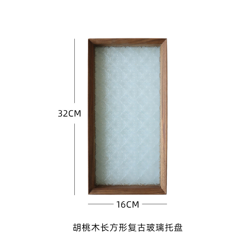 • 胡桃木长方形复古玻璃托盘