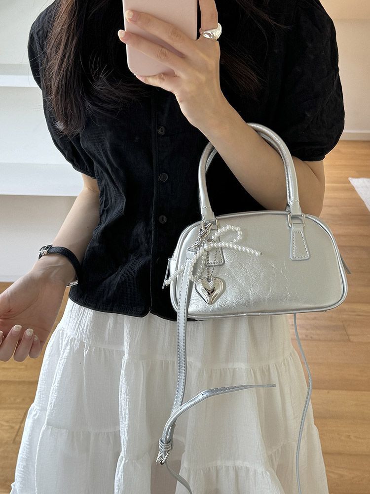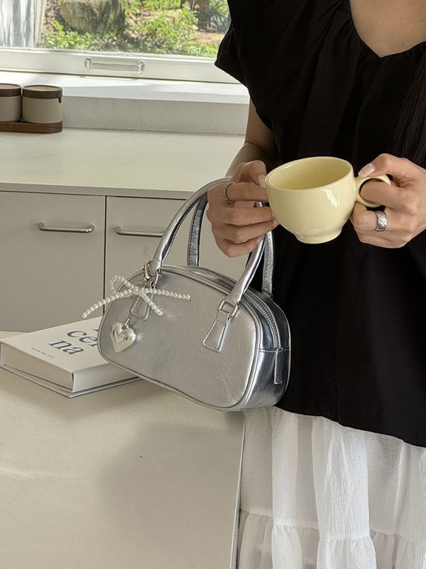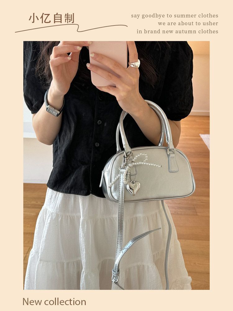 한국 2025년 신형 여성용 틈새 휴대용 소형 사각형 가방, 절묘하고 다재다능한 크로스바디 볼링백, 보스턴 베개 가방