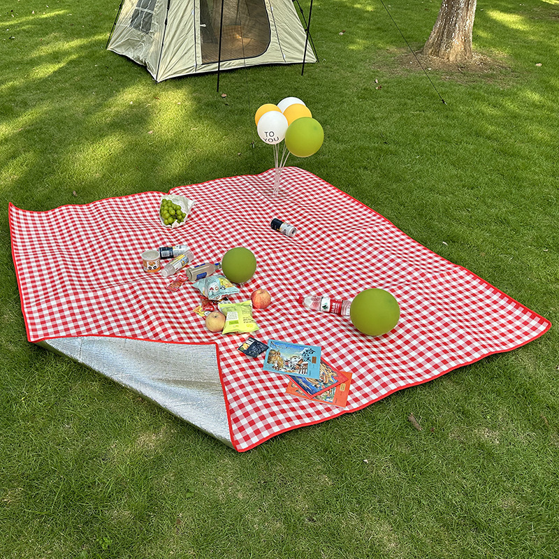 • 빨간색과 흰색 격자 격자 알루미늄 필름 피크닉 매트