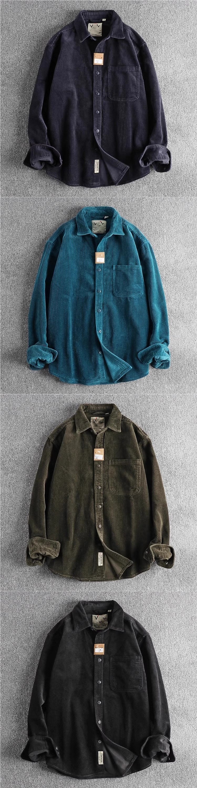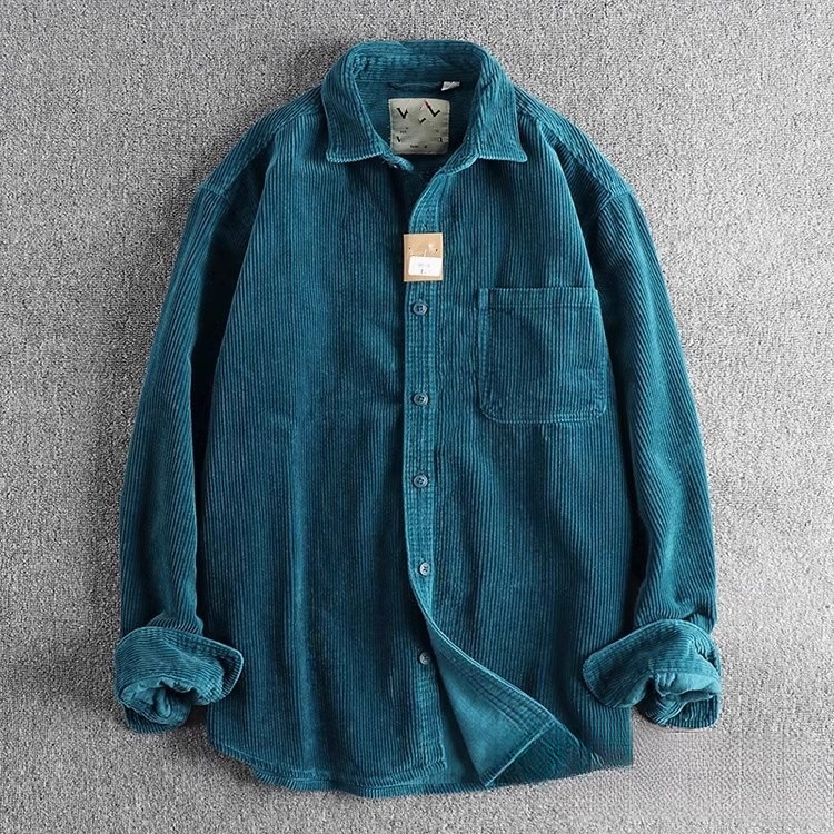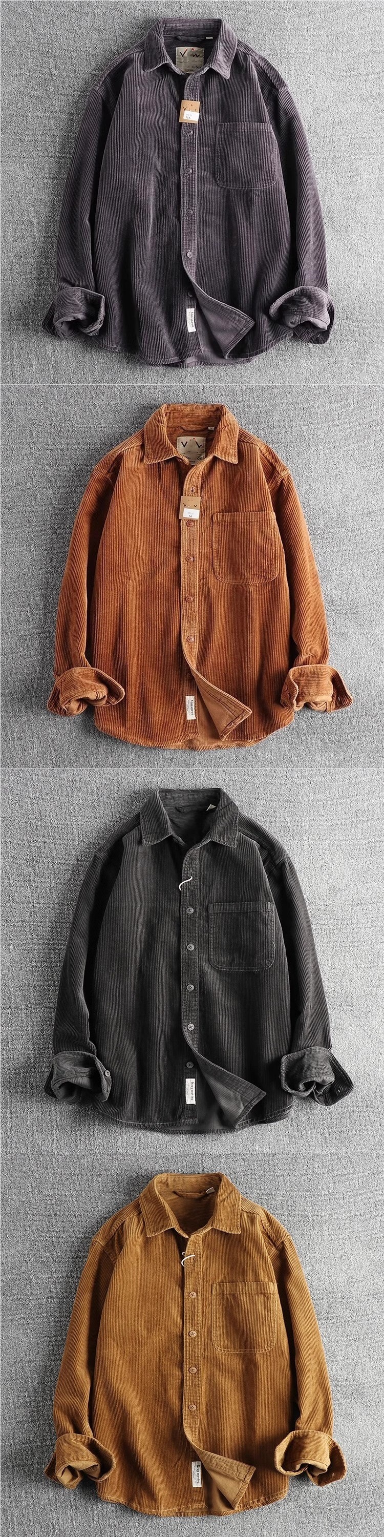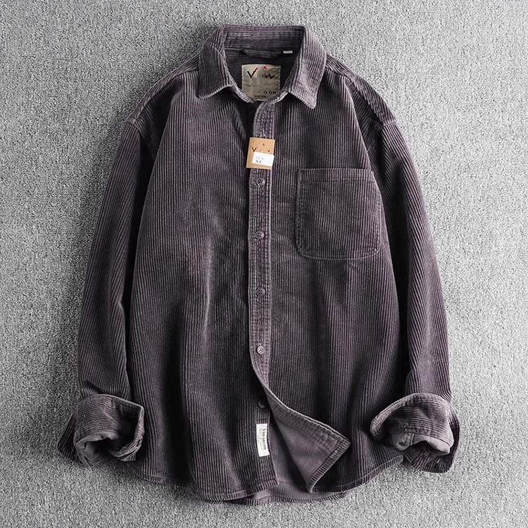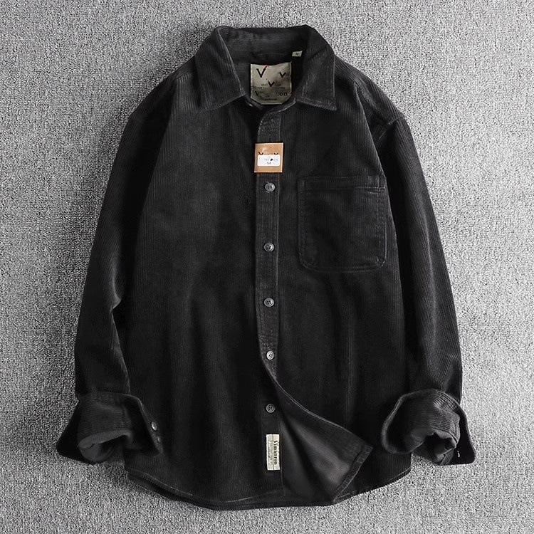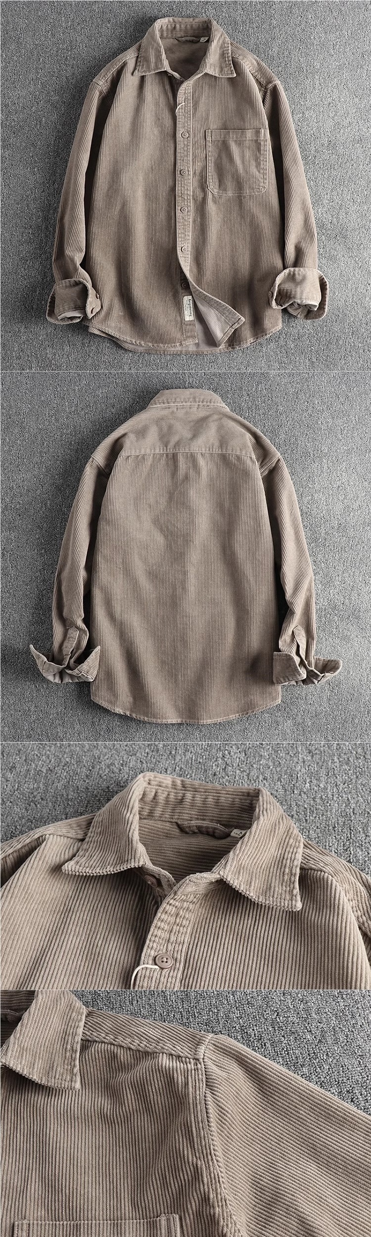 크로스보더 2025 신작 봄 워싱 긴팔 셔츠 남성용 아메리칸 심플 홍콩 스타일 트렌디 싱글 포켓 셔츠 재킷스토어 가기