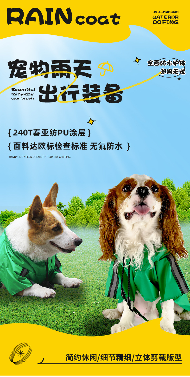 PU 코팅이 된 봄 면 소형 및 중형 애완동물 비옷, 반사 및 견인 가능한 개 비오는 날 의류, 더러움 방지 의류
