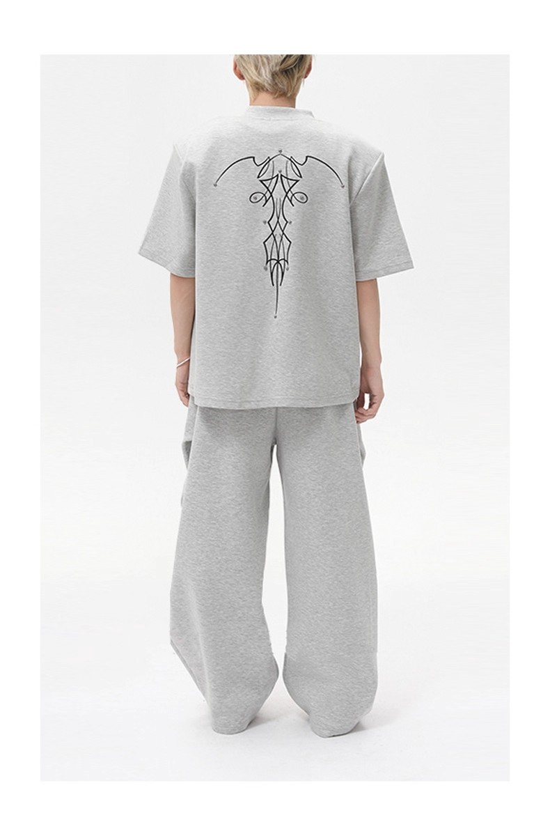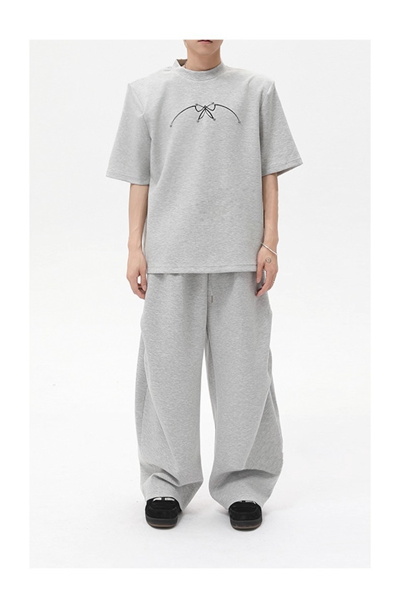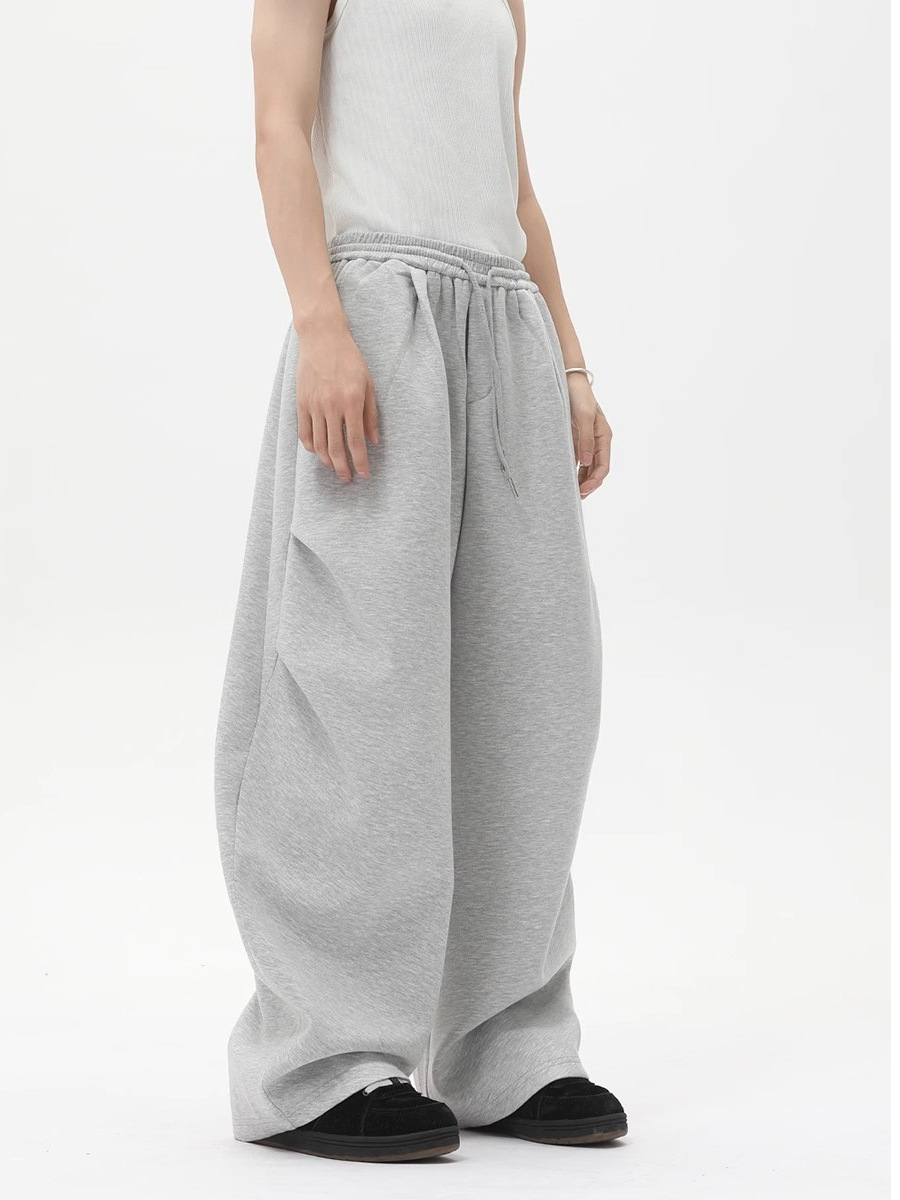 아메리칸 클린핏 헤비급 화이트 플라워 그레이 스포츠 팬츠 남성 트렌디 브랜드 주름 디자인 스트레이트 레그 마이크로 플레어 캐주얼 팬츠