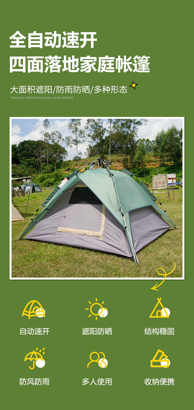 3~4인용 텐트, 완전 자동, 야외 자외선 차단 및 방수, 캠핑 장비, 휴대용, 설치 불가, 공장 도매스토어 가기
