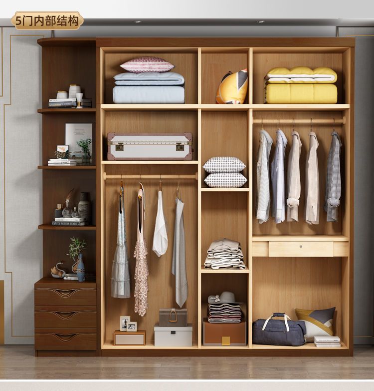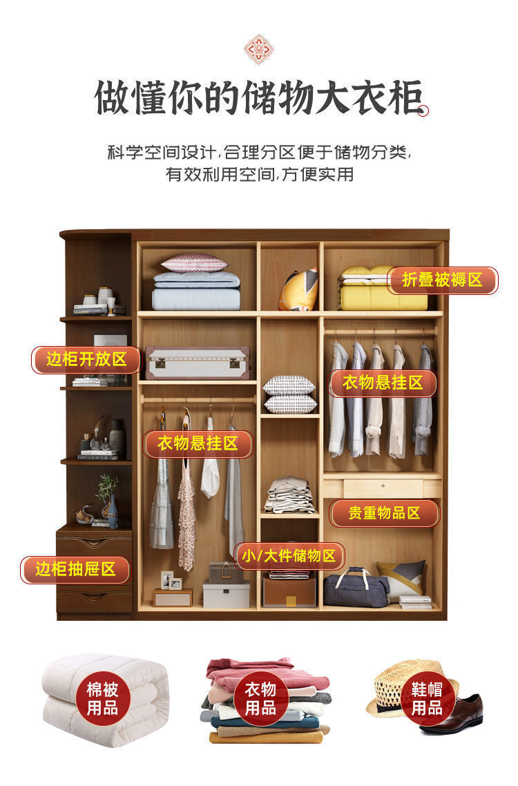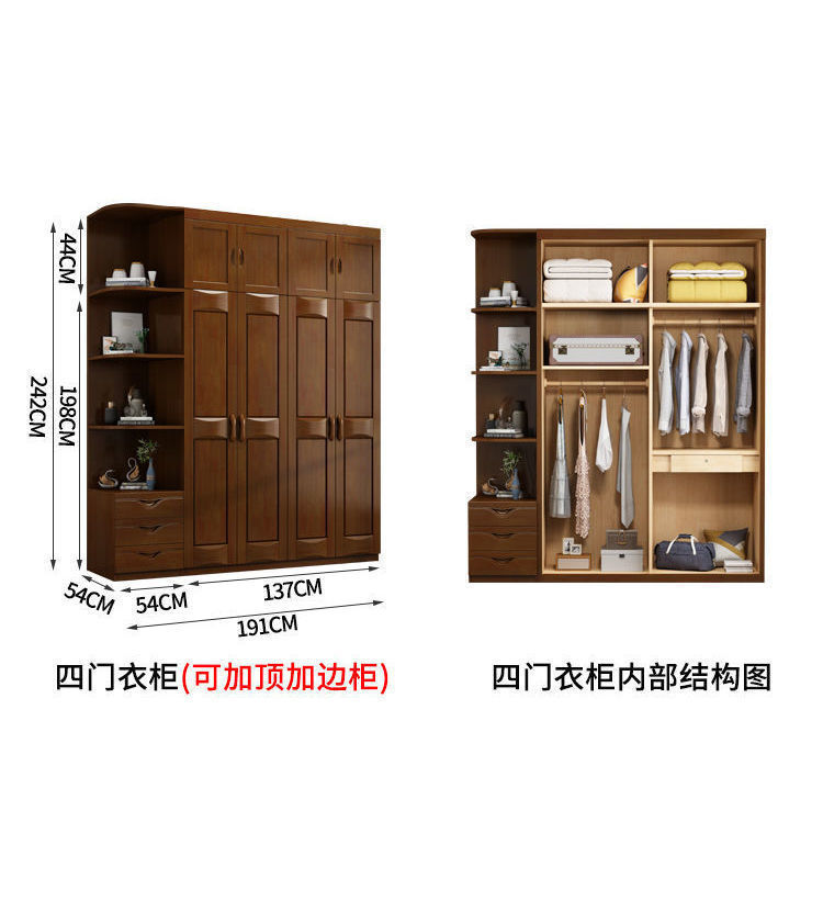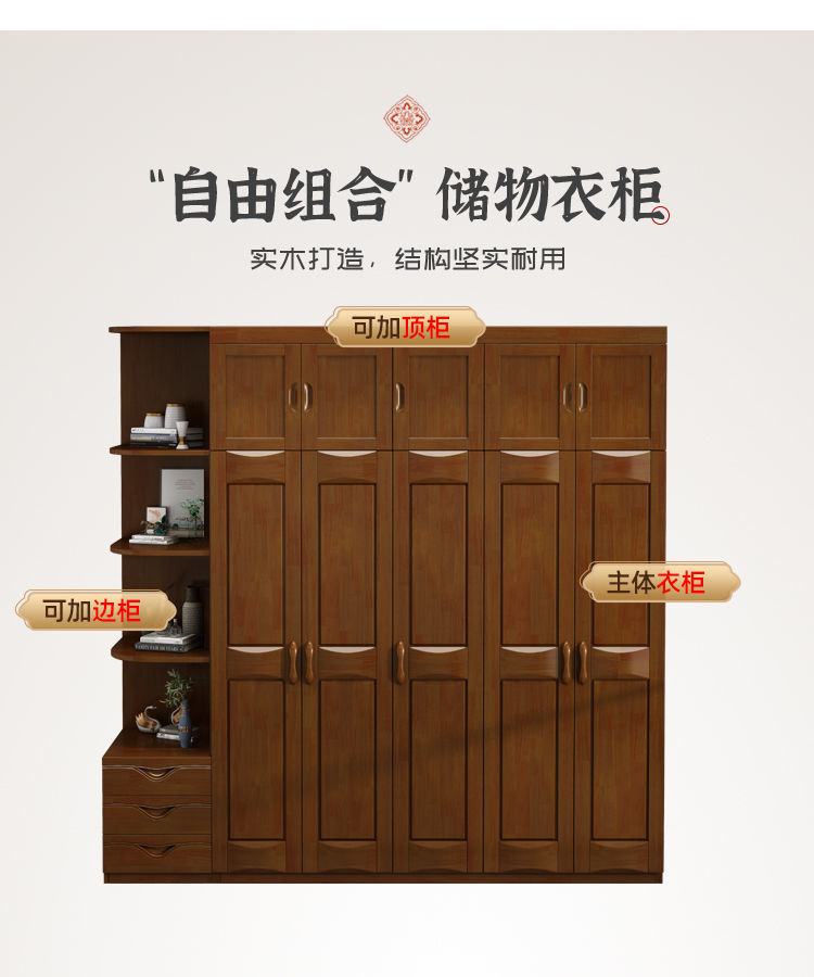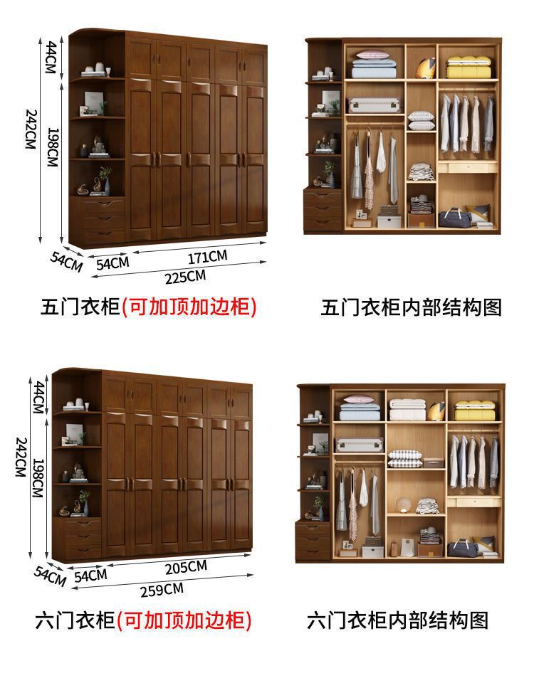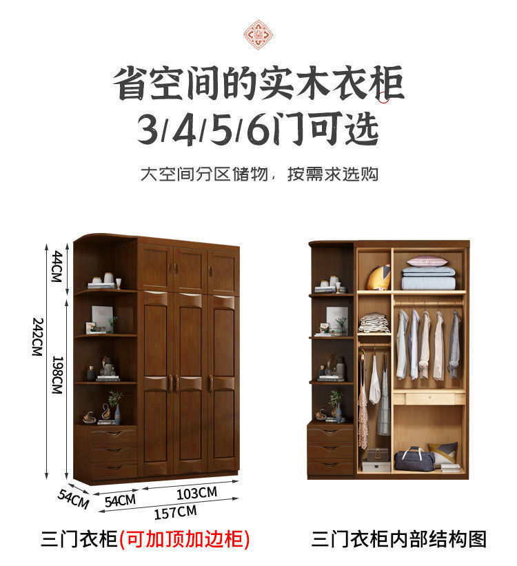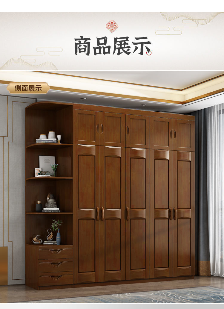 단단한 나무 옷장 3456 도어 새로운 중국 스타일 대형 옷장 간단한 현대 크고 작은 침실 경제적 인 옷장스토어 가기