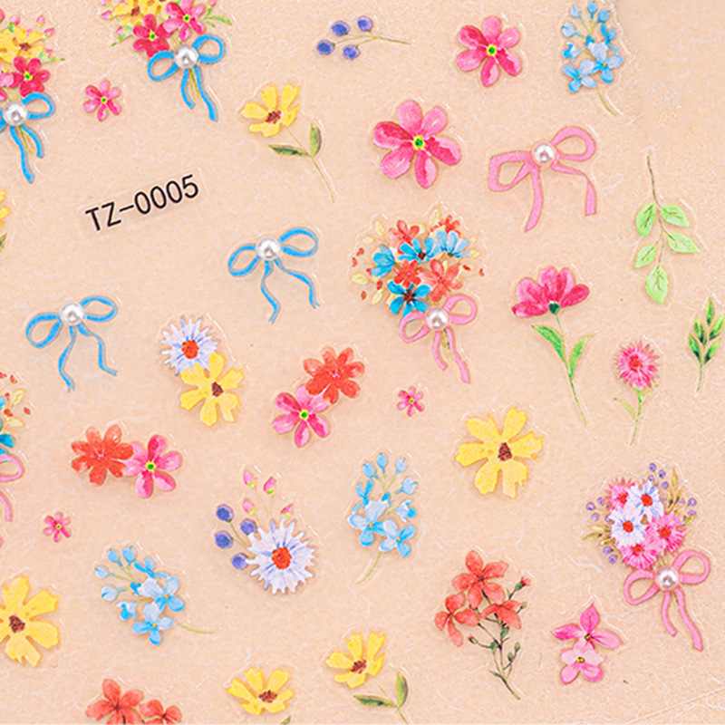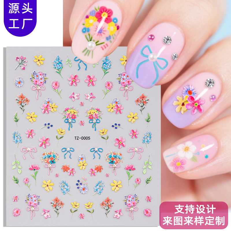 正祥网红新款5D美甲贴纸批发DIY亚克力珍珠钻花朵蝴蝶结ins指甲贴