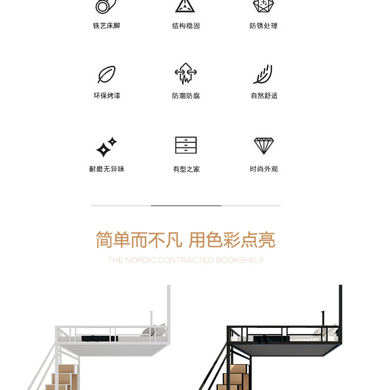 소형 아파트용 다기능 철제 프레임 해먹, 로프트 침대, 벽걸이 침대, 공간 절약형 새 아파트 로프트 침대스토어 가기