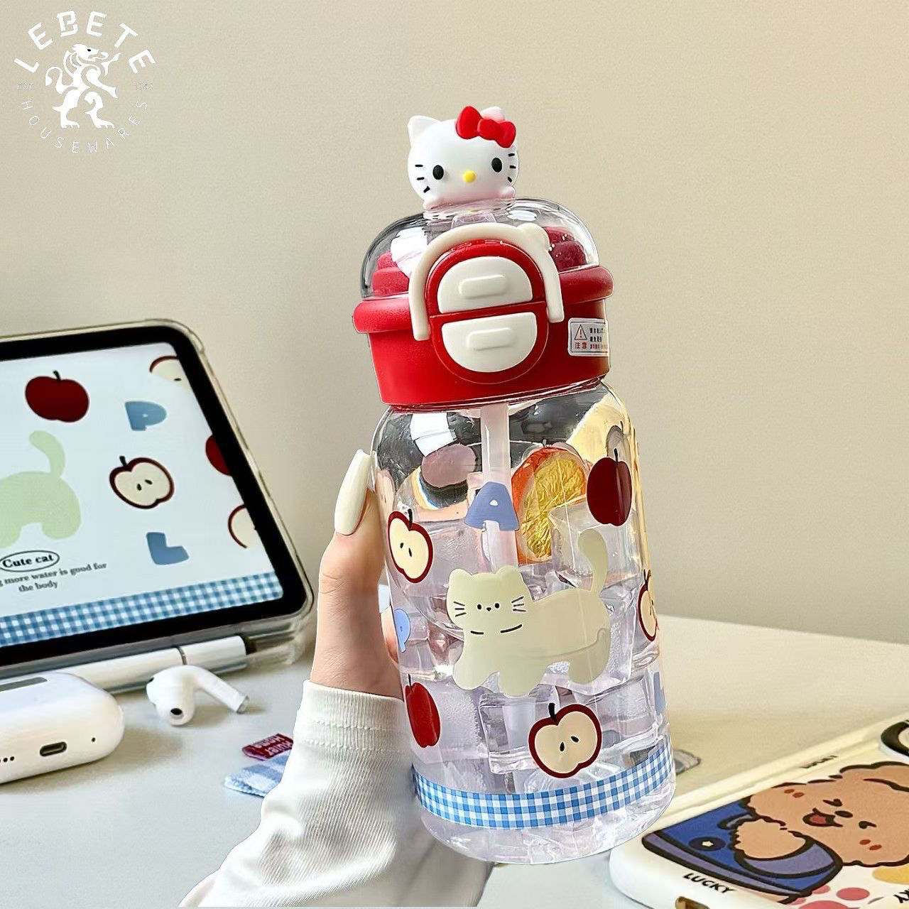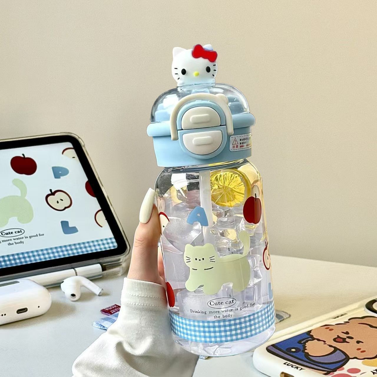 女生可爱高颜值ins便携式学生小众不撞款新款儿童吸管卡通塑料杯