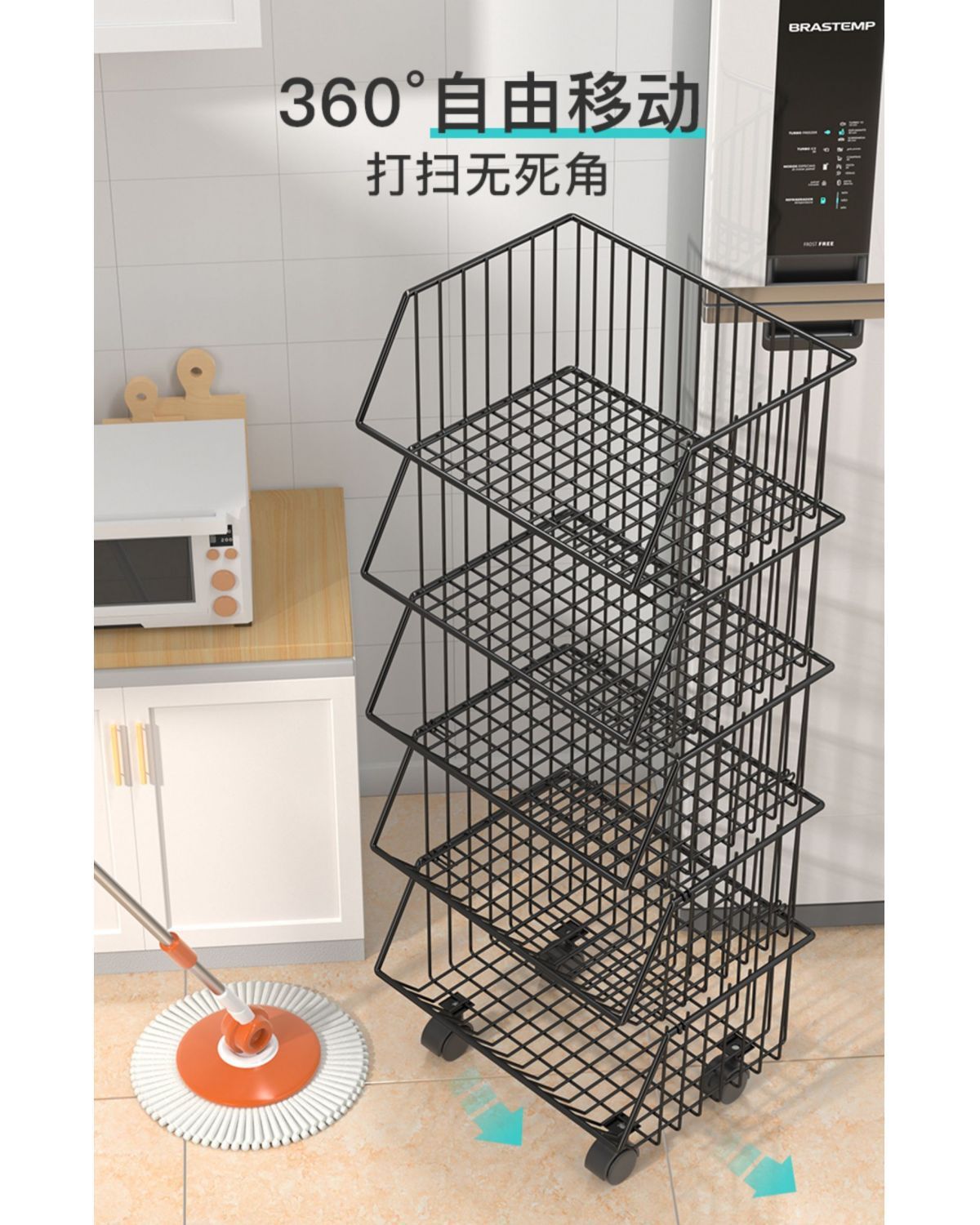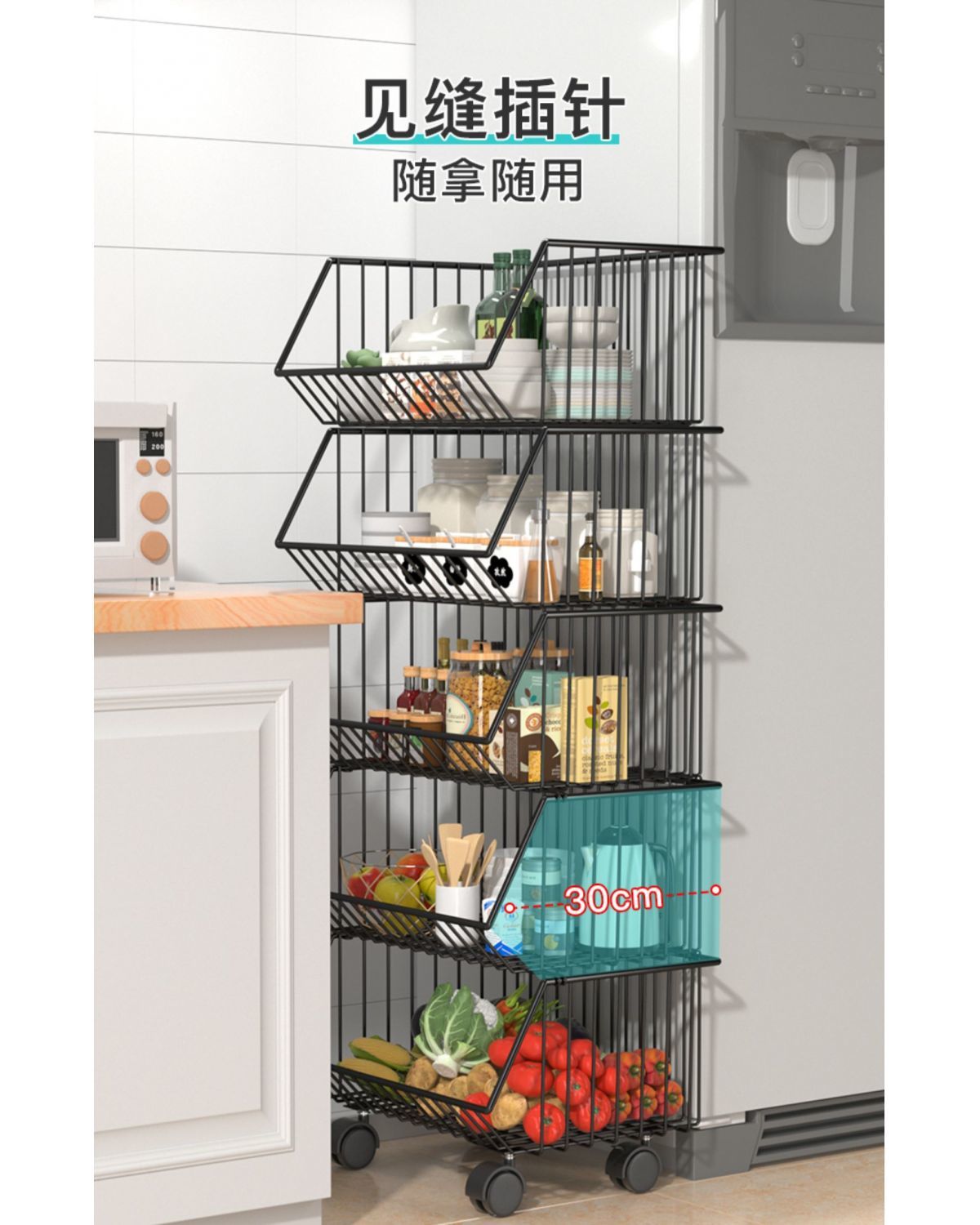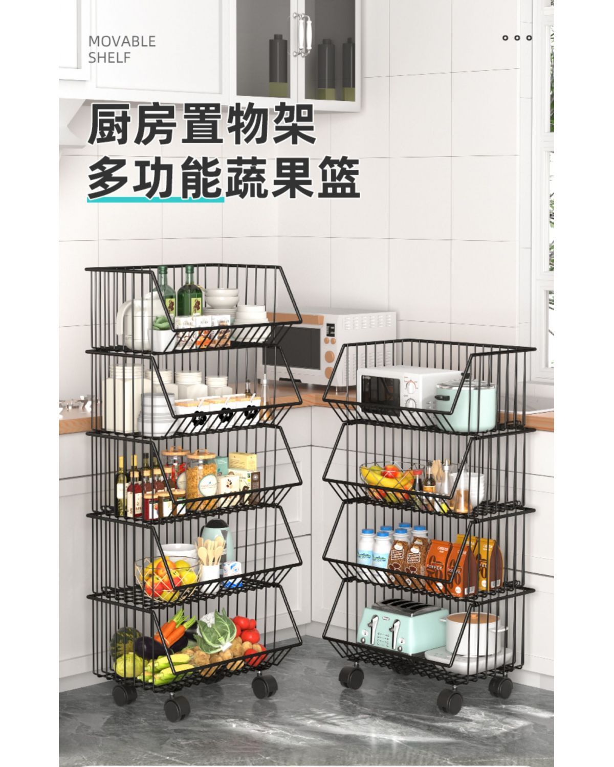 주방 보관함 다층 바닥에서 천장까지 가정용 이동식 트롤리 과일 및 야채 바구니 스낵 장난감 보관함스토어 가기