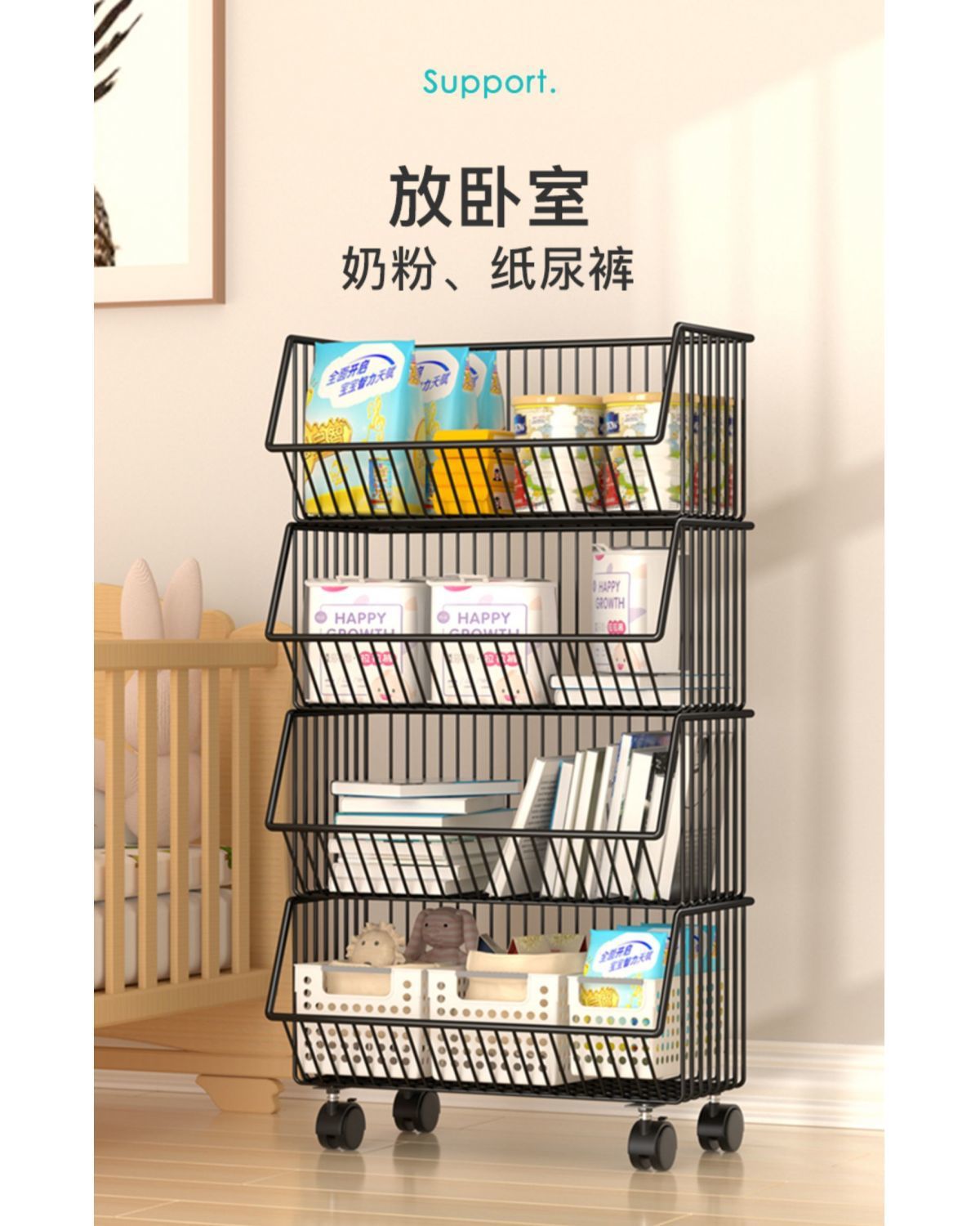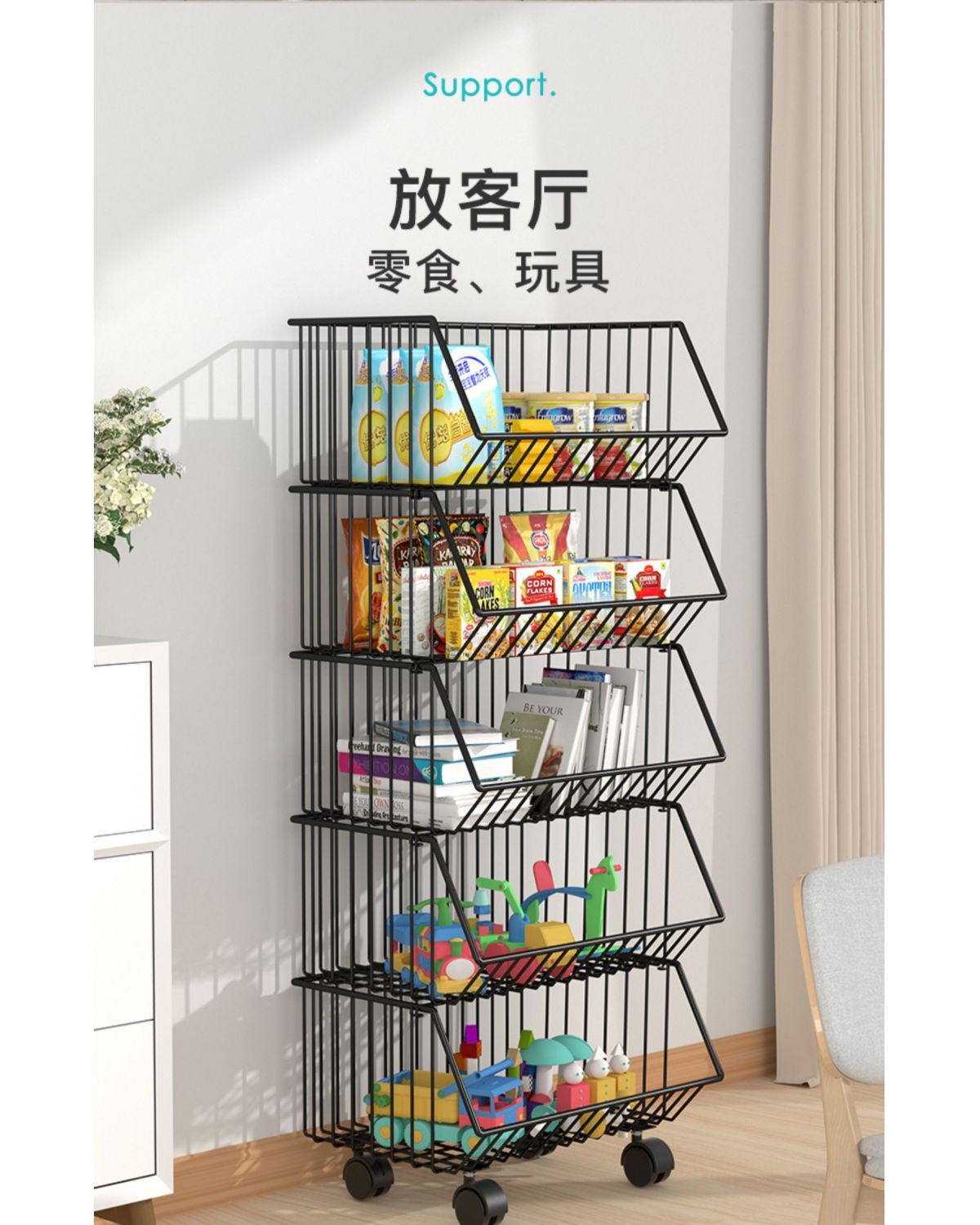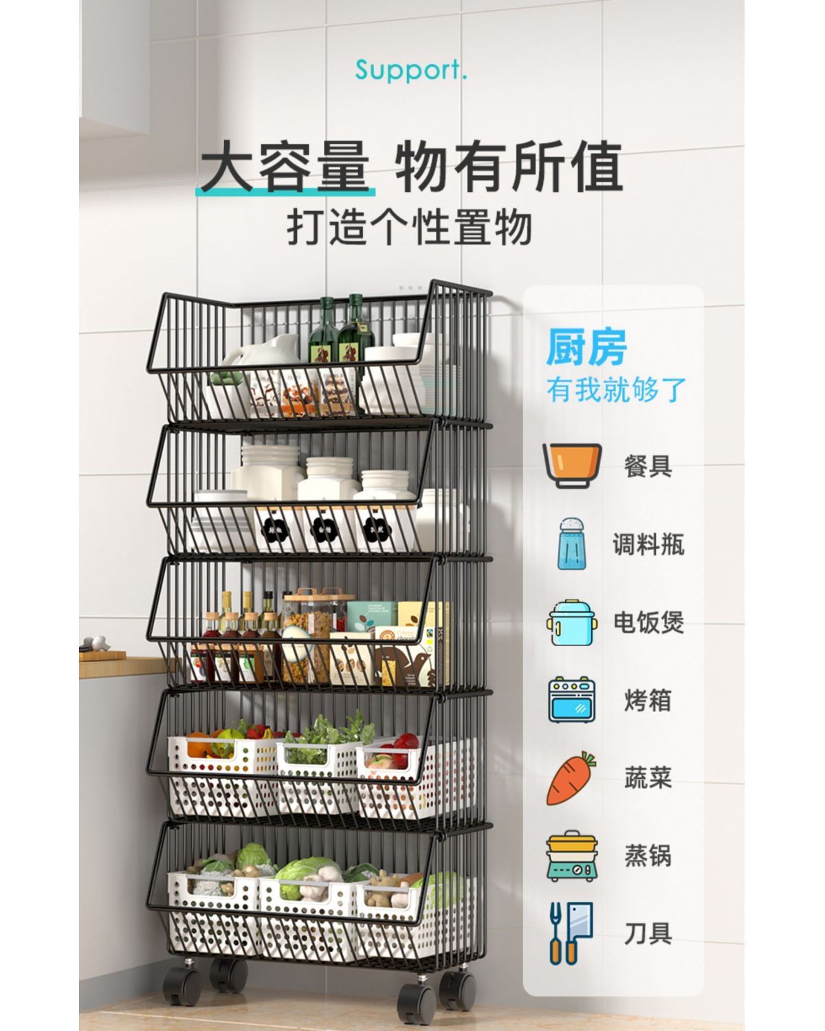 주방 보관함 다층 바닥에서 천장까지 가정용 이동식 트롤리 과일 및 야채 바구니 스낵 장난감 보관함스토어 가기