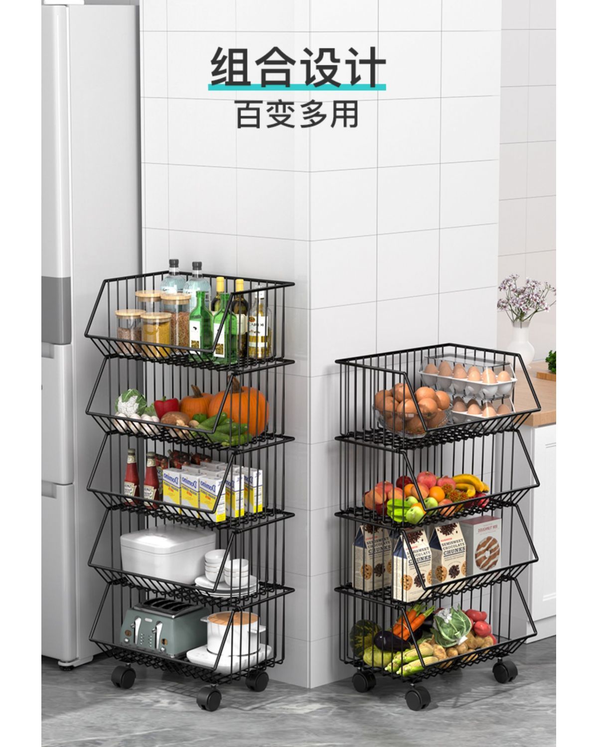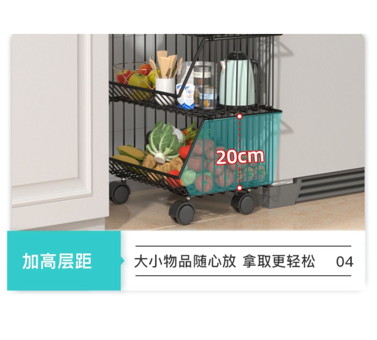주방 보관함 다층 바닥에서 천장까지 가정용 이동식 트롤리 과일 및 야채 바구니 스낵 장난감 보관함