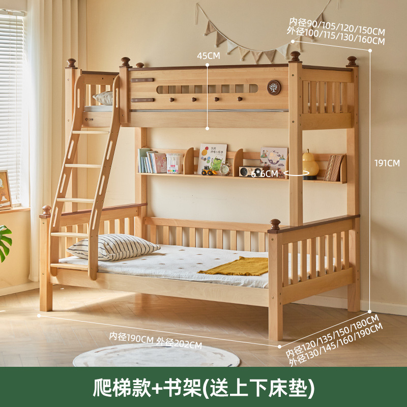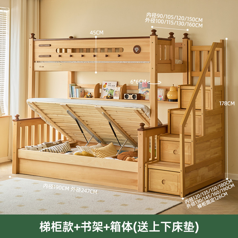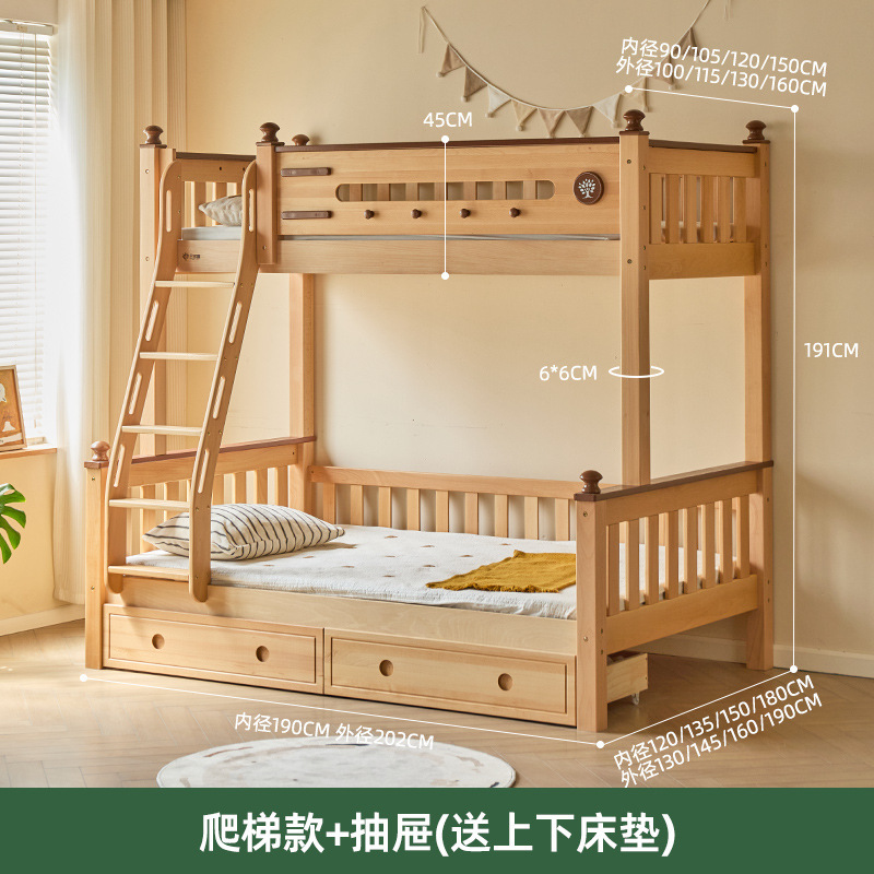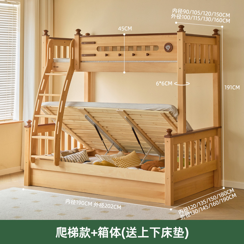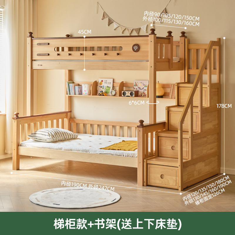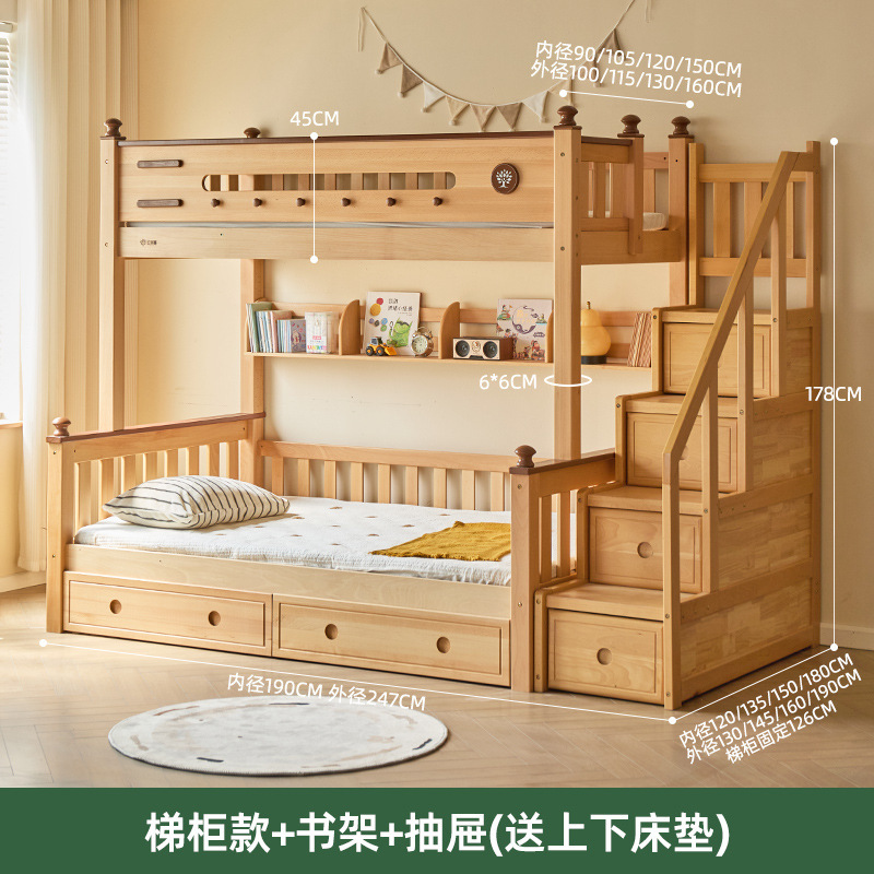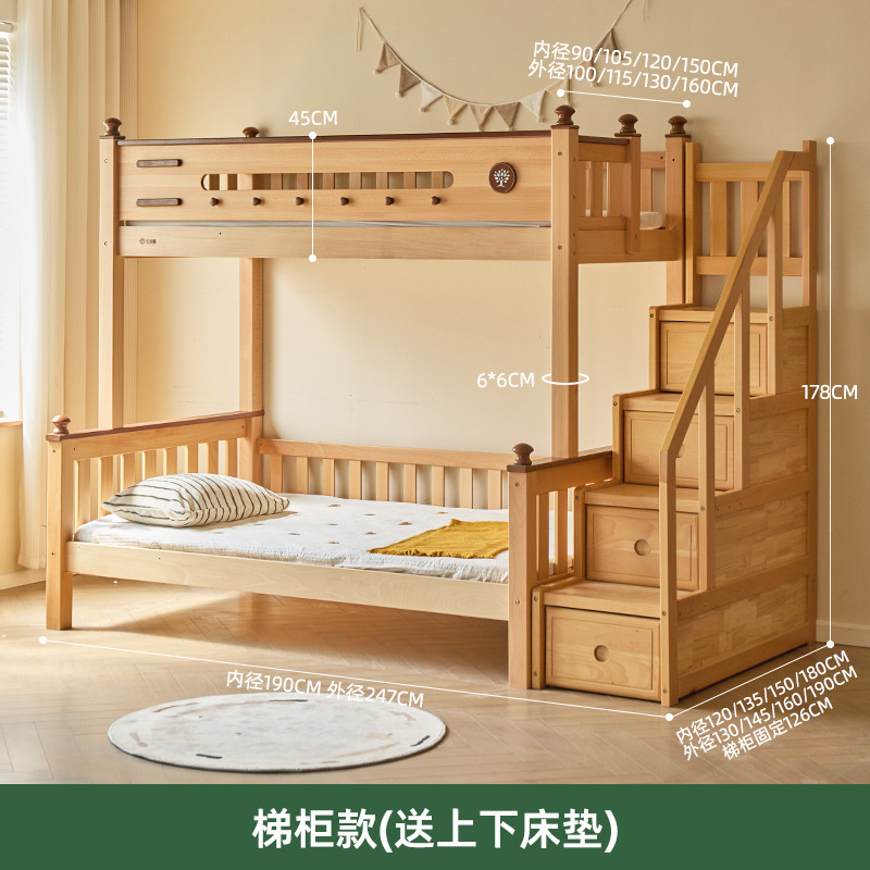 Jinduoxi 이층 침대, 원목 이층 침대, 소형 가정용 높낮이 침대, 너도밤나무 어린이 침대, 두꺼운 이층 침대스토어 가기