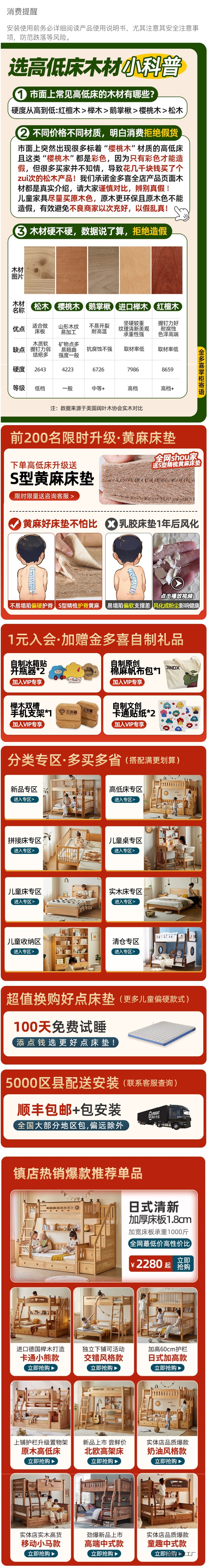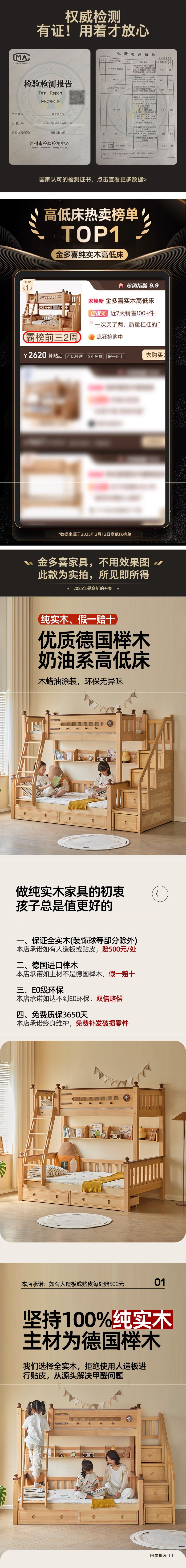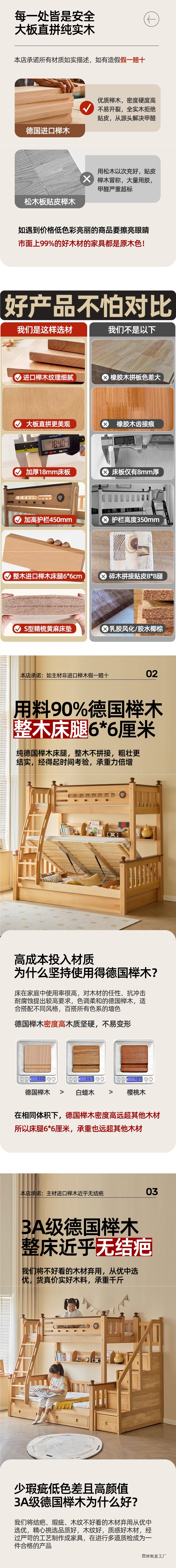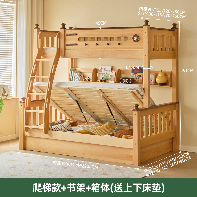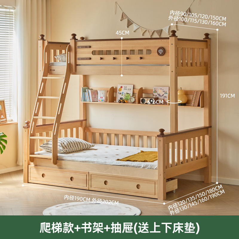 Jinduoxi 이층 침대, 원목 이층 침대, 소형 가정용 높낮이 침대, 너도밤나무 어린이 침대, 두꺼운 이층 침대스토어 가기