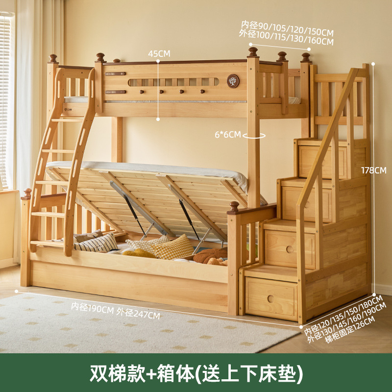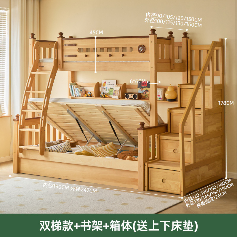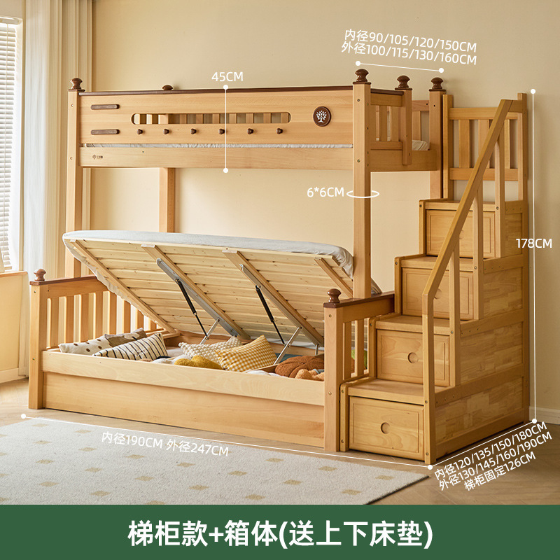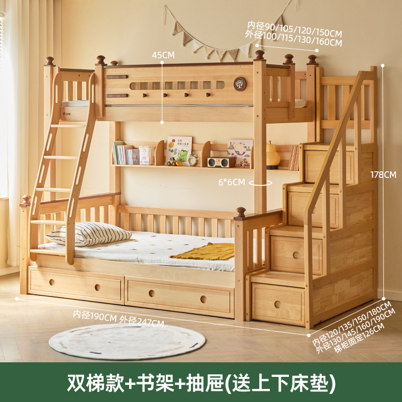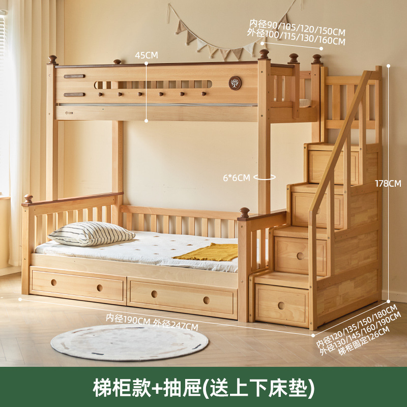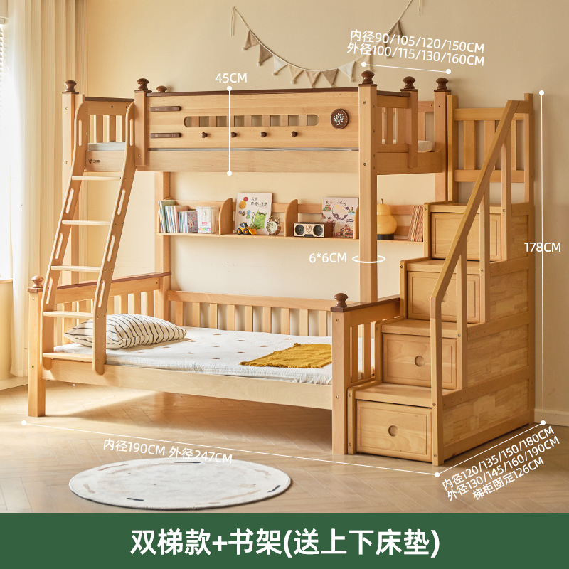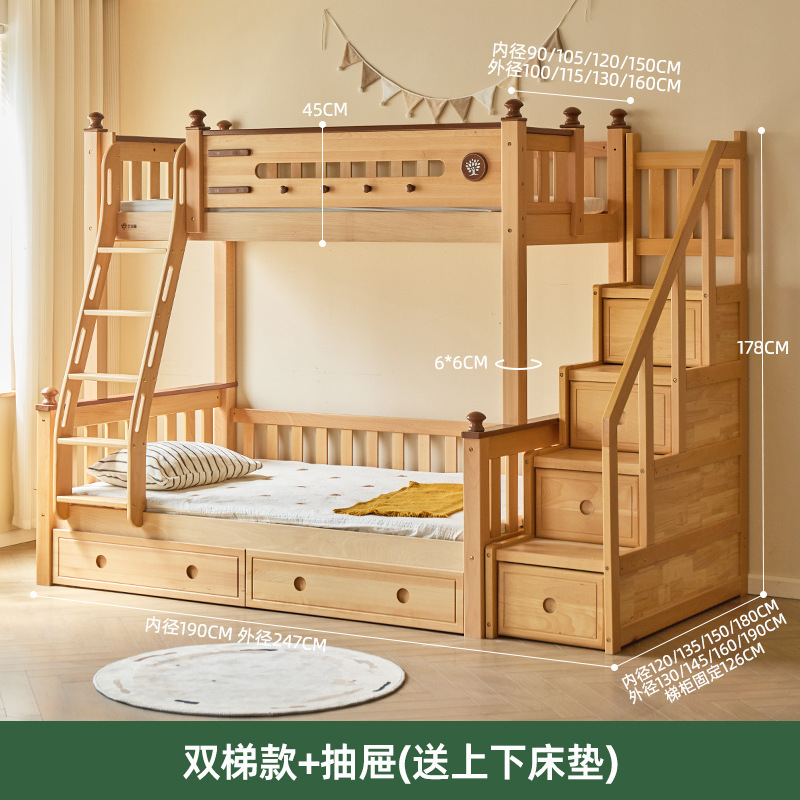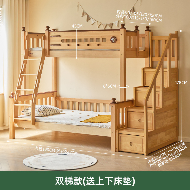 Jinduoxi 이층 침대, 원목 이층 침대, 소형 가정용 높낮이 침대, 너도밤나무 어린이 침대, 두꺼운 이층 침대