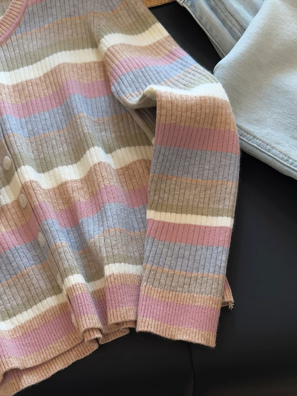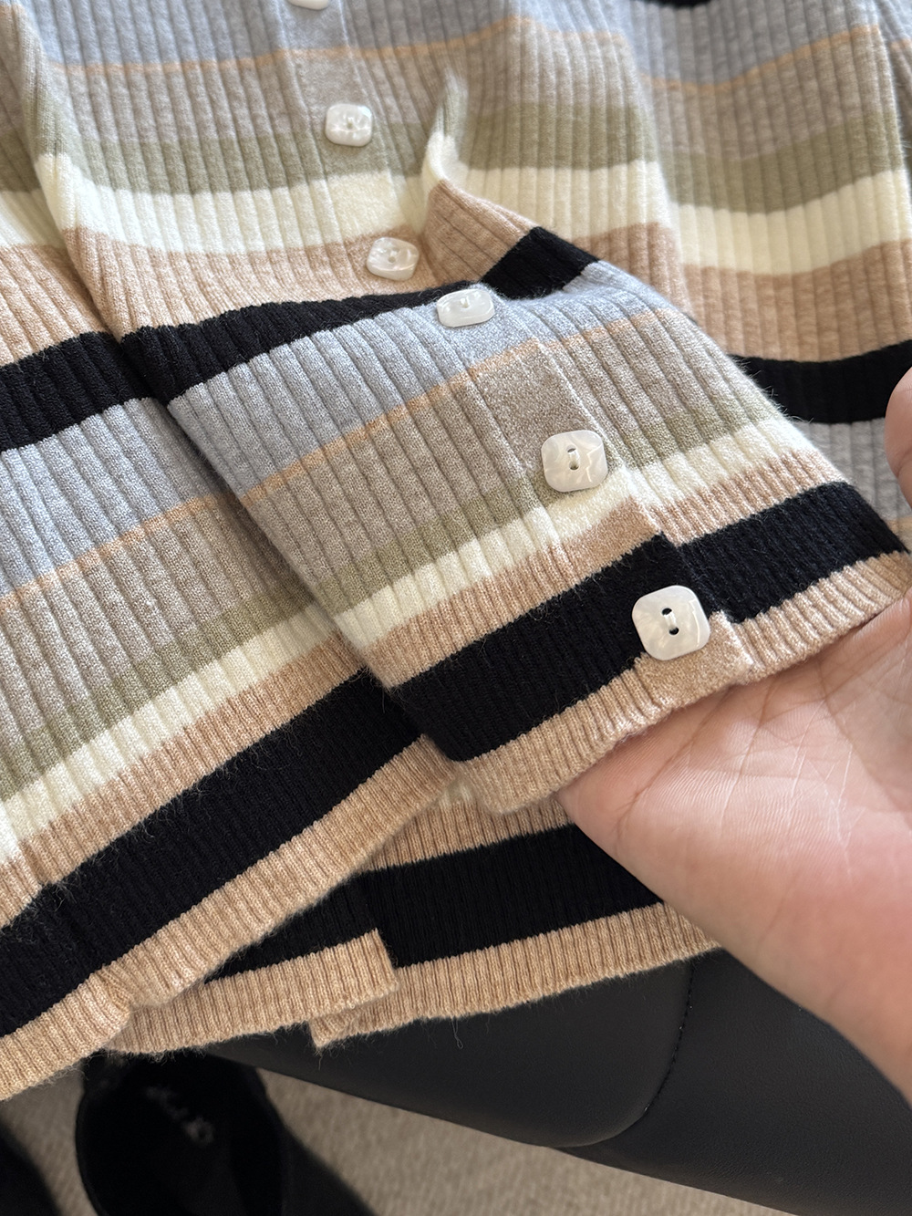 여성을위한 세련된 연령 감소 긴팔 스트라이프 스웨터 2025 여성을위한 새로운 봄, 가을 탑 얇은 슬림 피트 바닥 스웨터