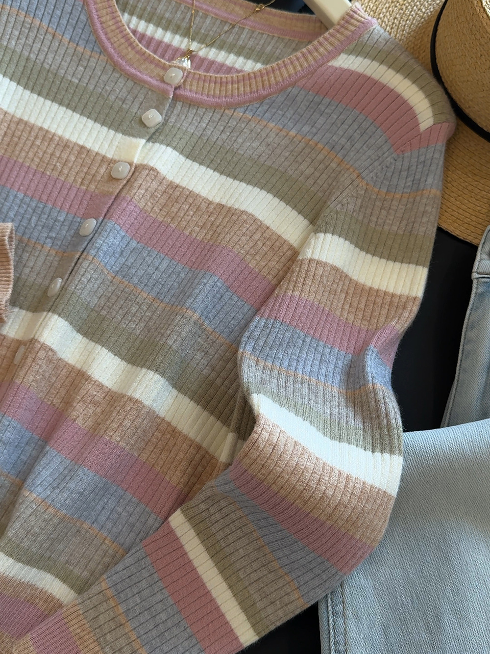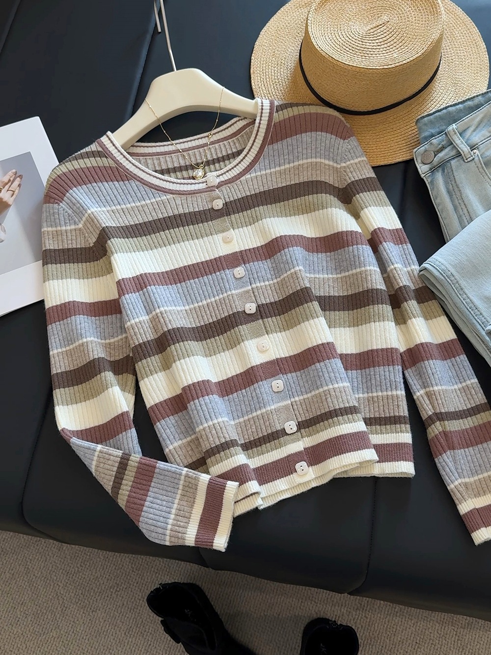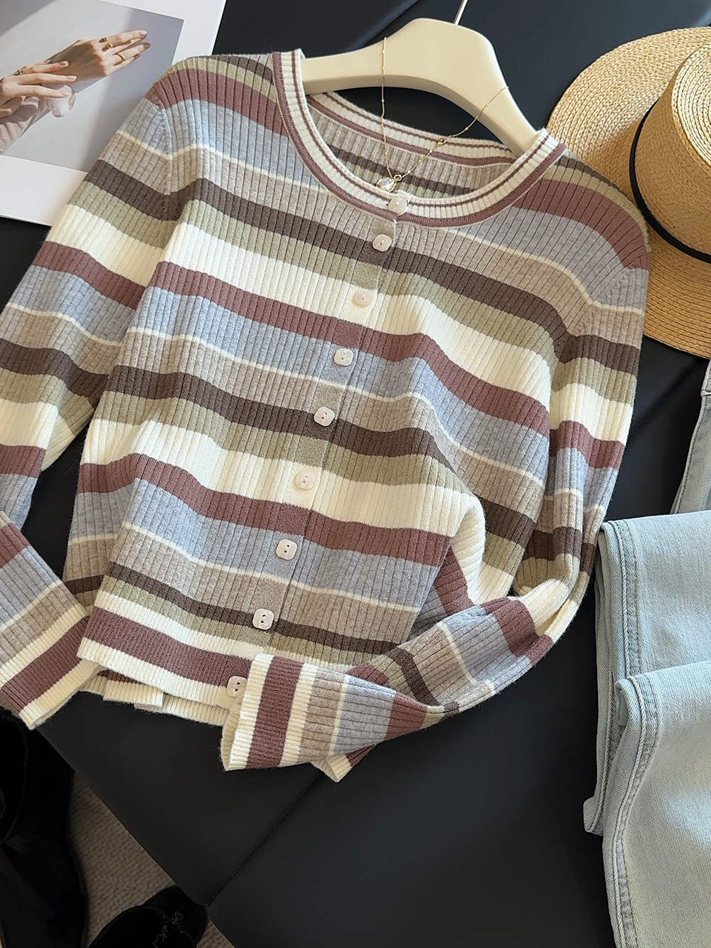 여성을위한 세련된 연령 감소 긴팔 스트라이프 스웨터 2025 여성을위한 새로운 봄, 가을 탑 얇은 슬림 피트 바닥 스웨터스토어 가기