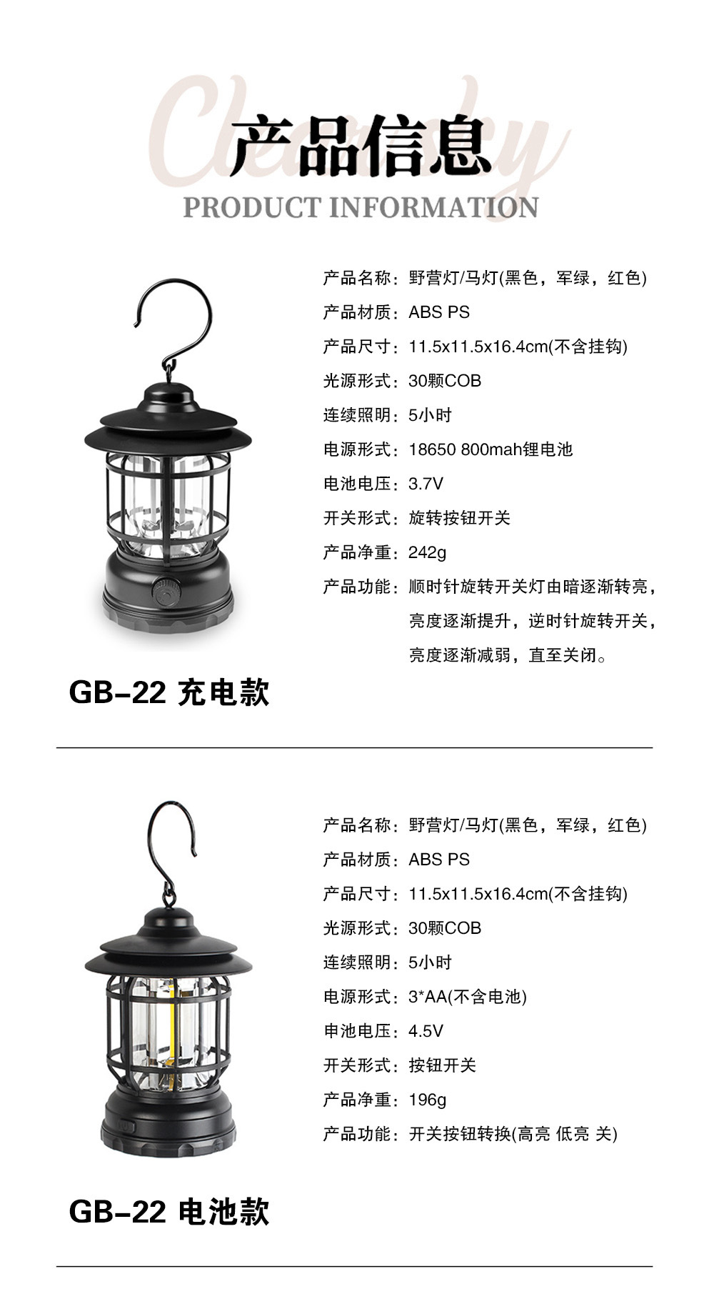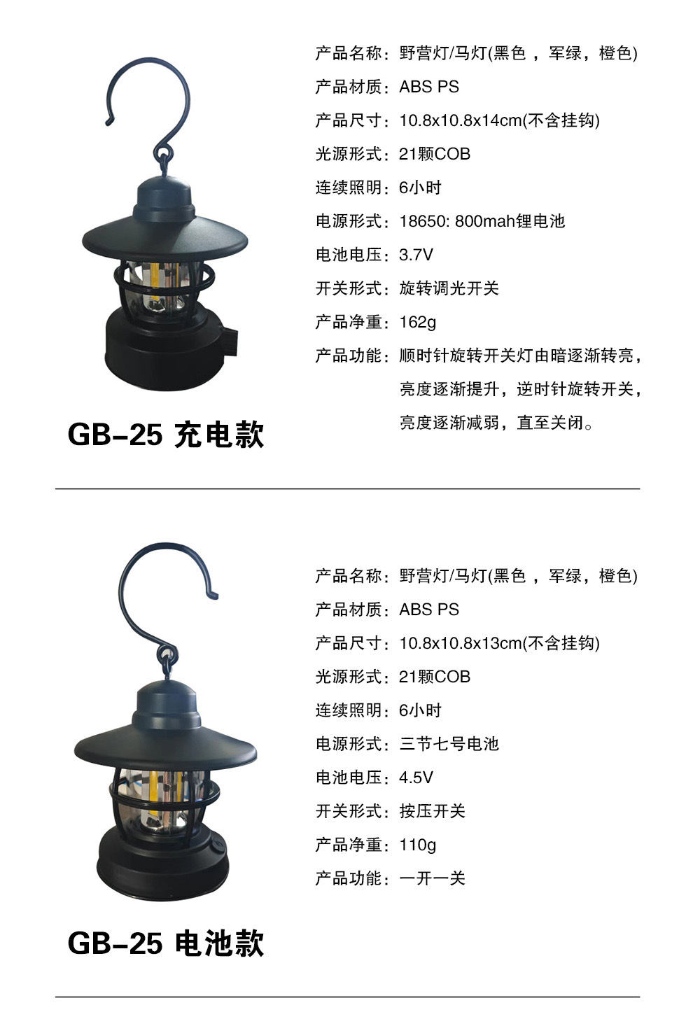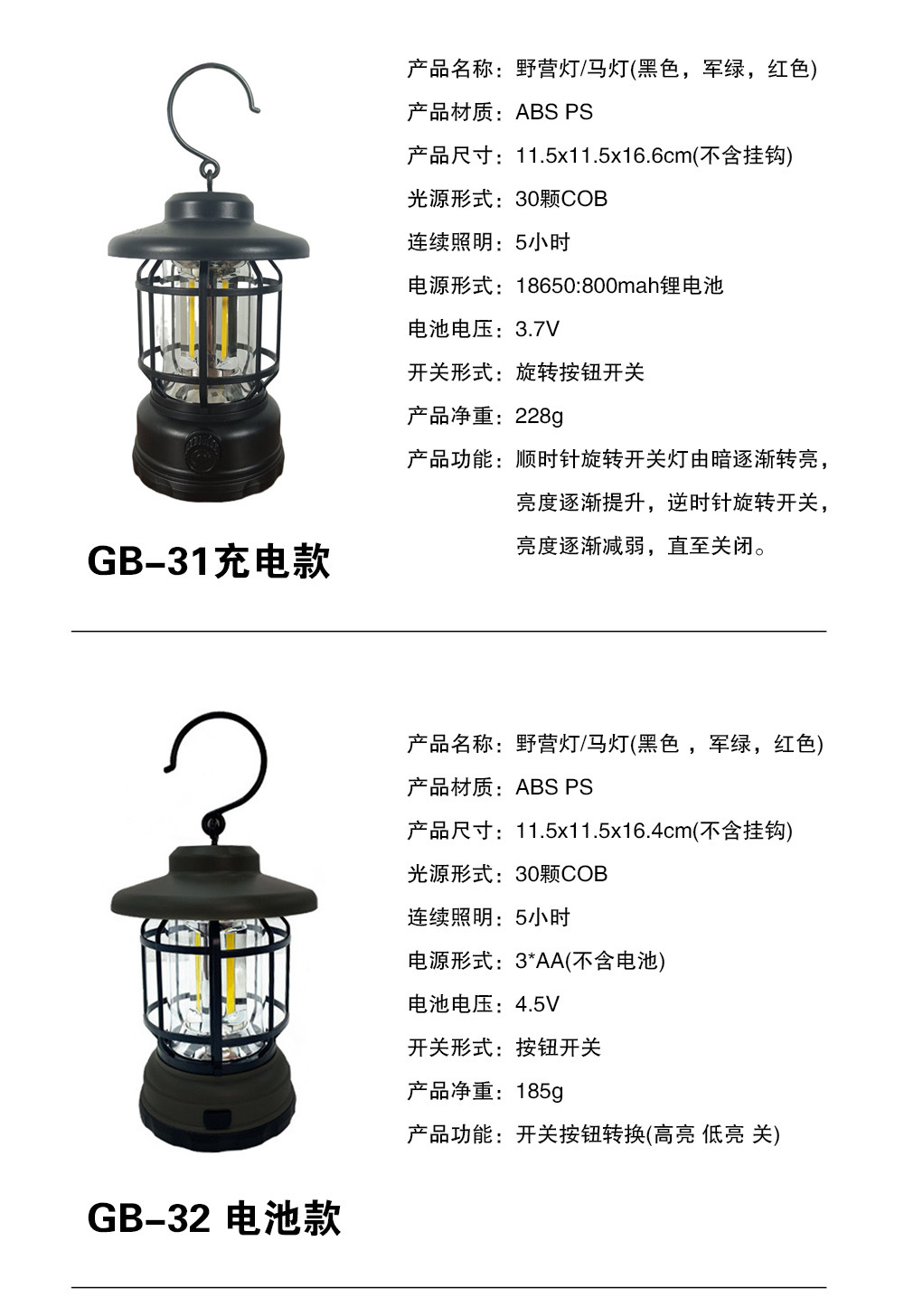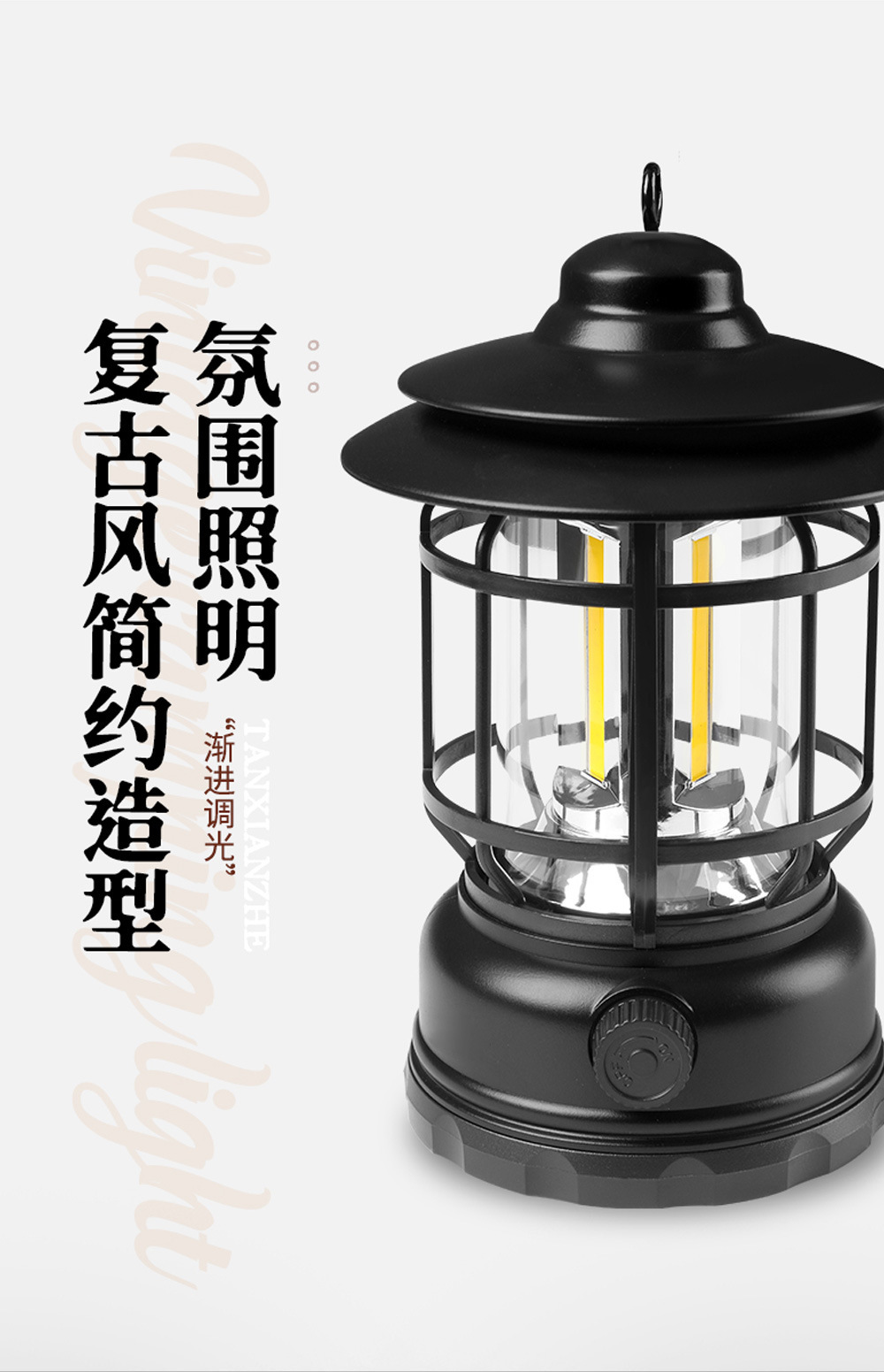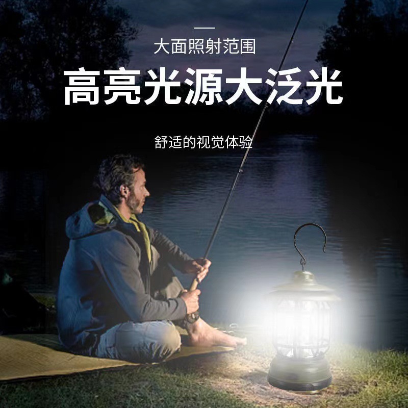 국경 간 새로운 야외 다기능 캠핑 텐트 COB 캠핑 램프 복고풍 LED 말 랜턴 낚시 휴대용 램프