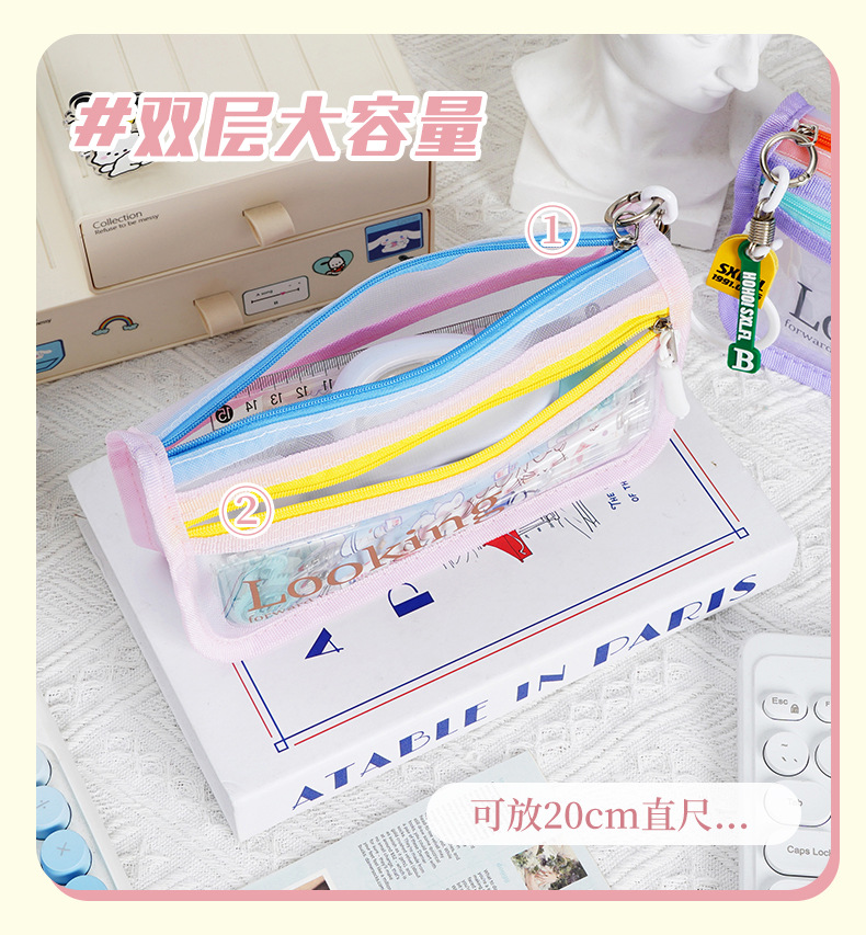 수험용 반투명 메쉬 필통, 대용량 문구가방, 학생용 특수 필통, 문구박스